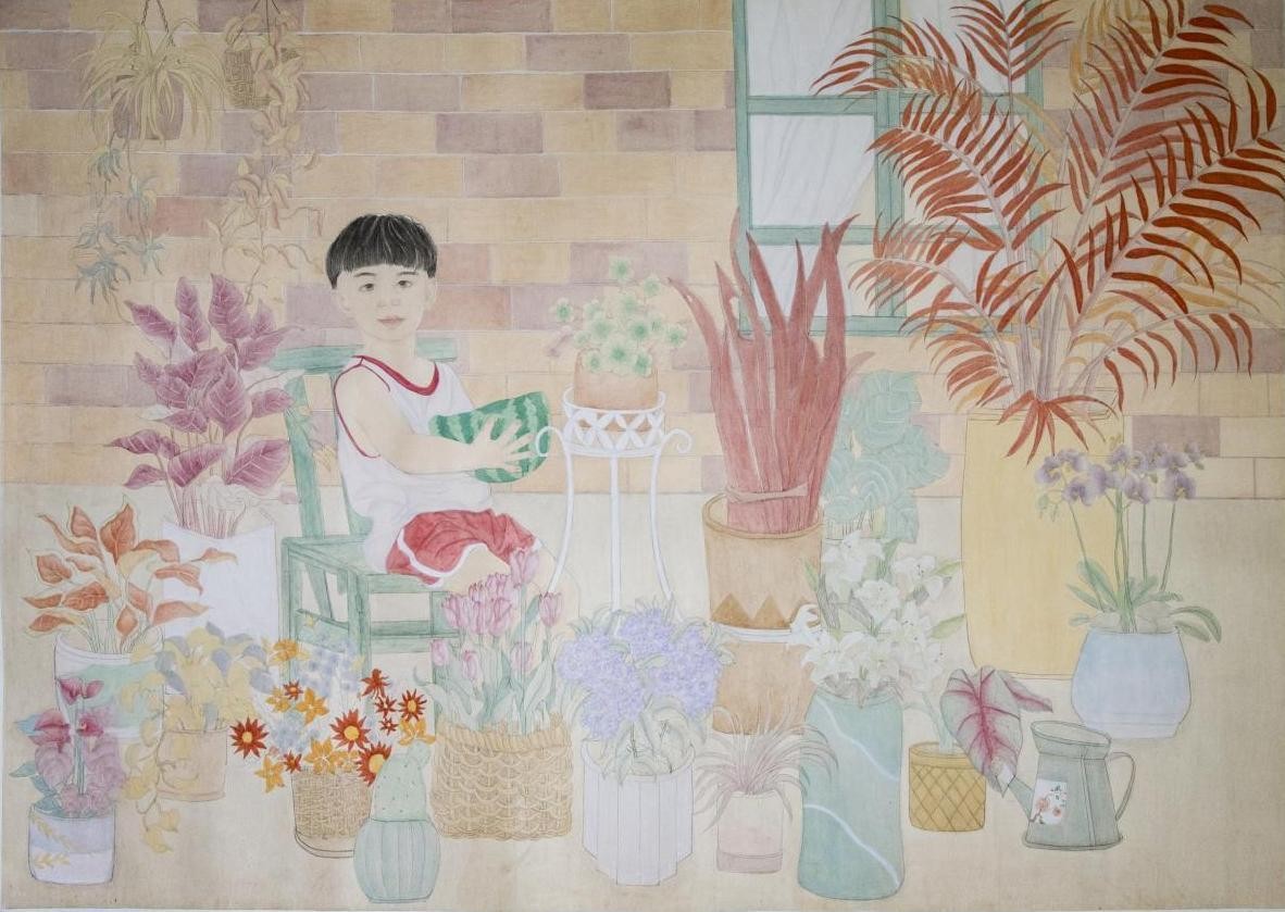 《童·颜》 刘学梅 工笔人物93cm×185.5cm2023年