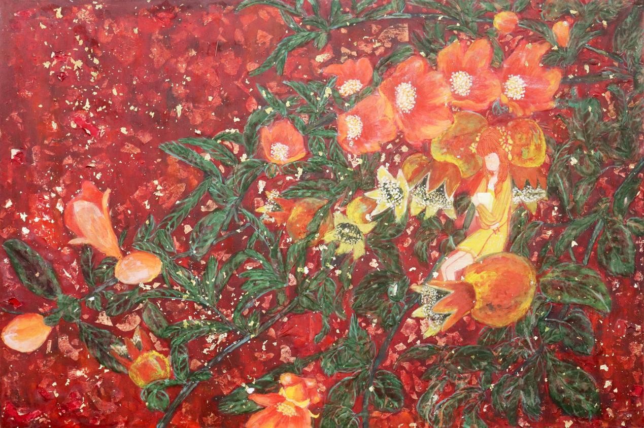 《花觅》之石榴花 柯钿钿岩彩 40cmX60cm 2023年
