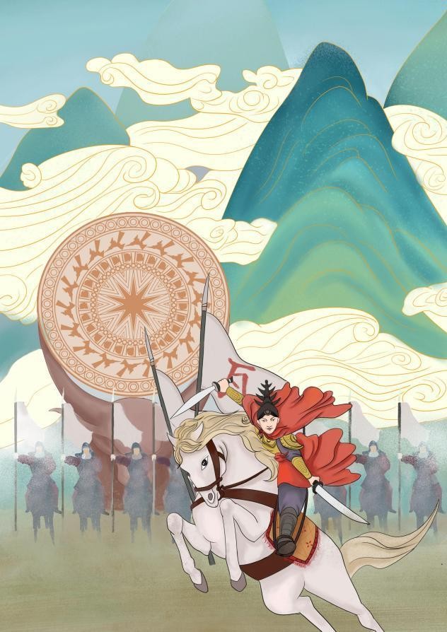 《牛神耕地》 黄丽金 板绘a42023年 《瓦氏夫人出征》 黄丽金 板绘a42023年