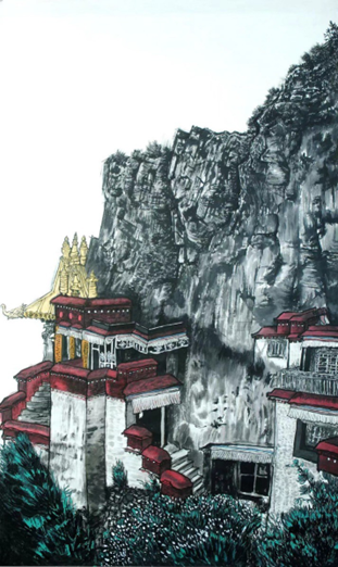 《无声》系列之一 旦增西热 写意水墨画 138cm×69cm 2023年
