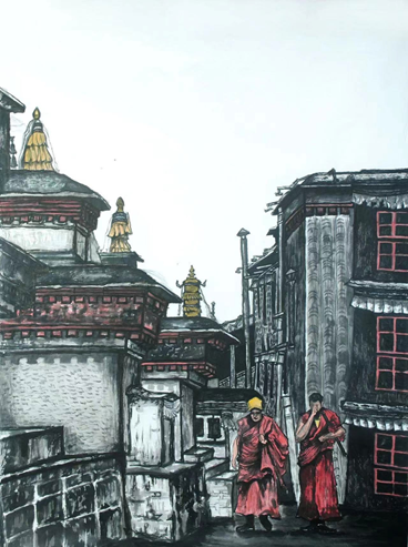 《无声》系列之二 旦增西热 写意水墨画 138cm×69cm 2023年