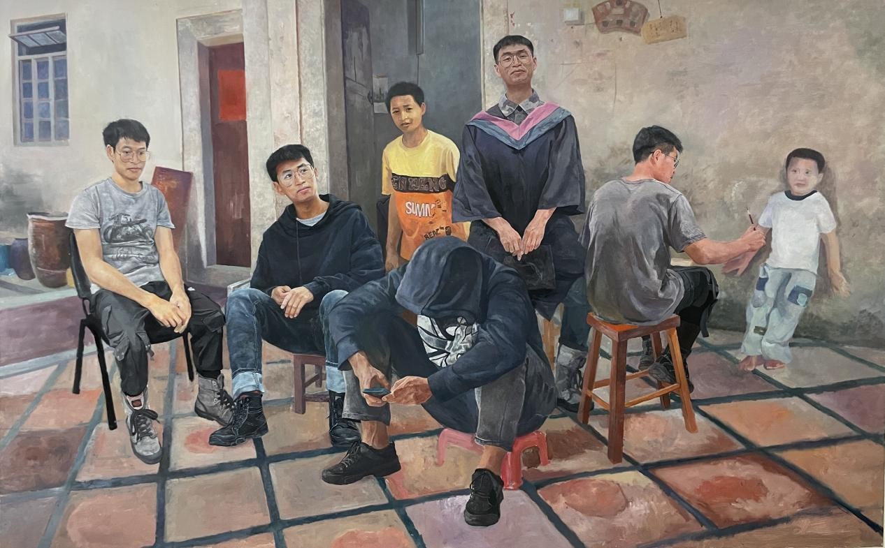 《牌会》 卢雨阳 布面油画120cm×160cm2023年