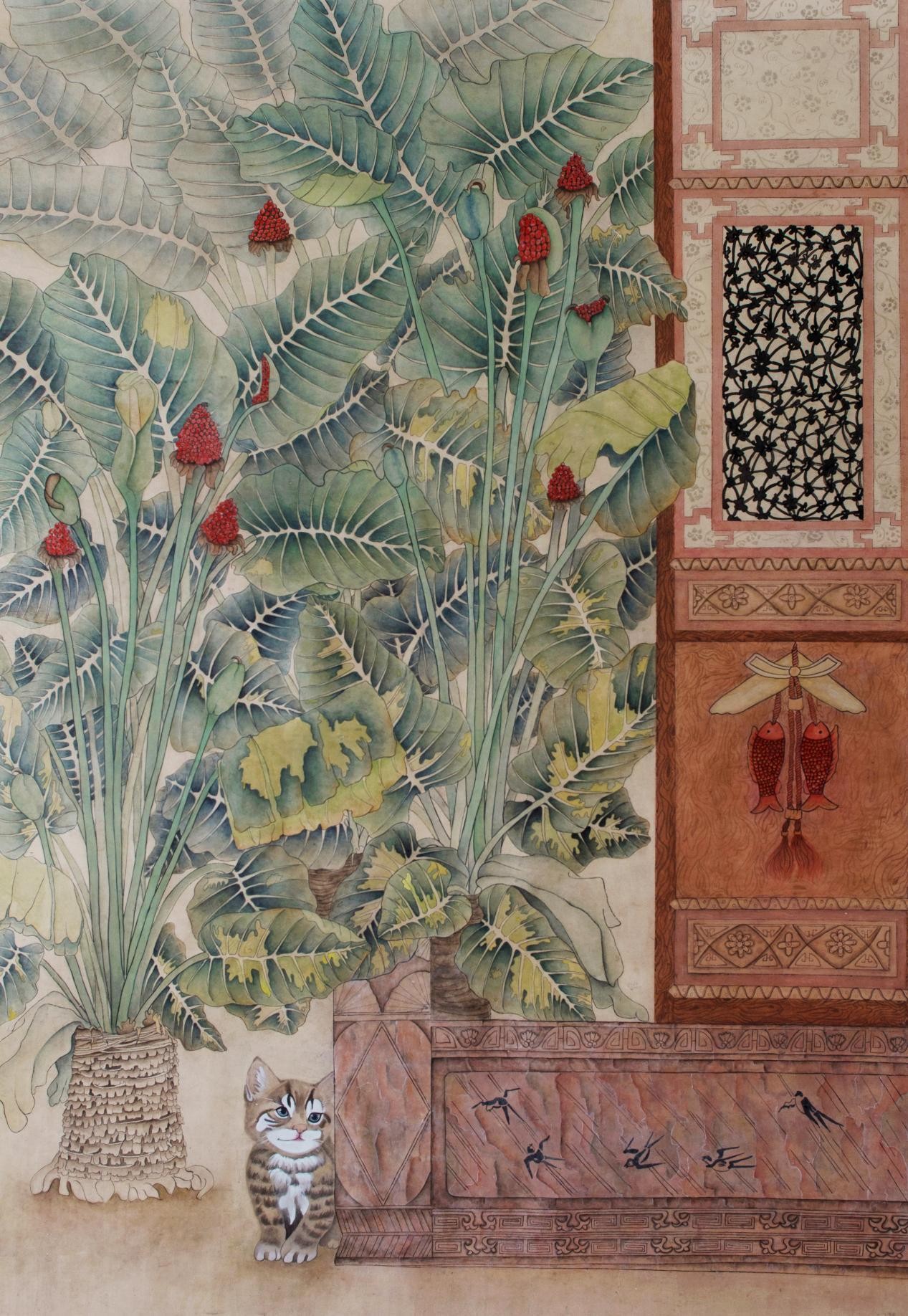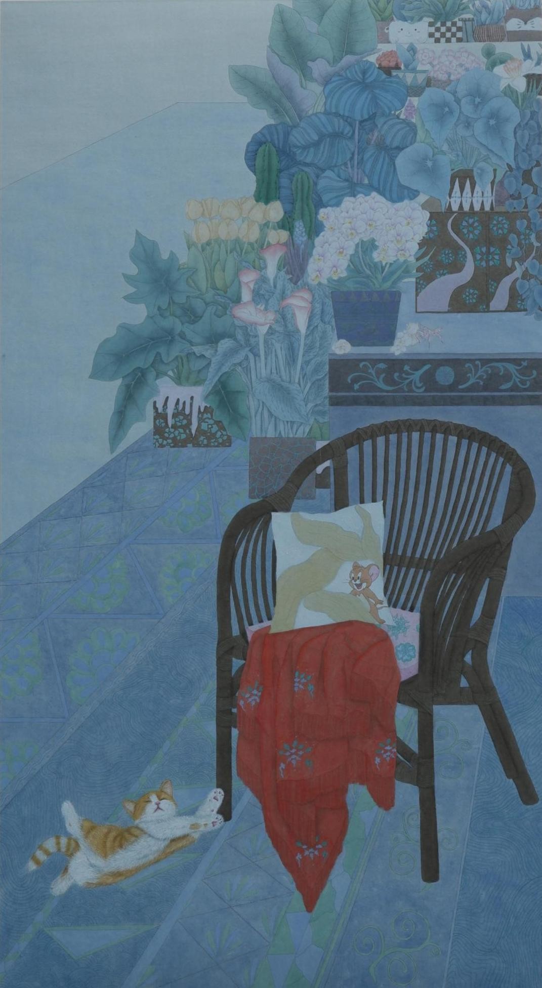 《蓁蓁·闲趣》 江铃铃 纸本设色190cmx105cm2023年