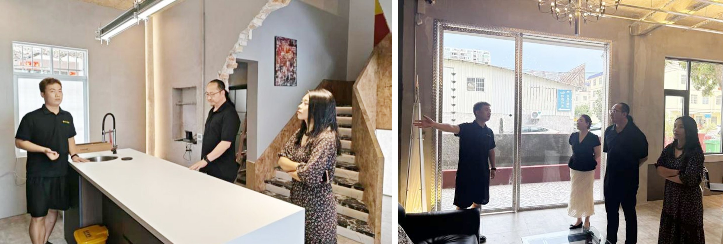 座谈会后,学院领导一行在胡元总监和张虎总监等带领下参观了公司的设计部和项目案例展示等部门,深入了解了公司的运营情况和设计理念,并就如何更好地将企业文化、前沿技术、实际项目引入课堂教学,如何提升学生的实践能力和职业素养,以及如何建立长效的校企合作机制等问题进行了深入探讨,并达成了初步合作意向。