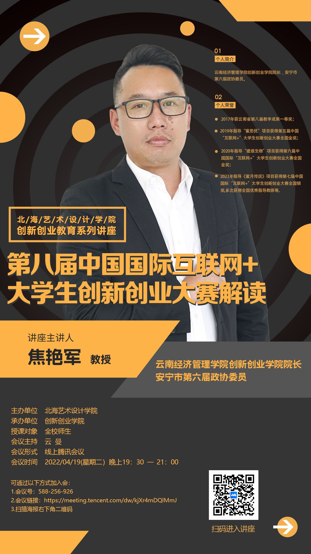讲座名称:《第八届中国国际互联网+大学生创新创业大赛解读》