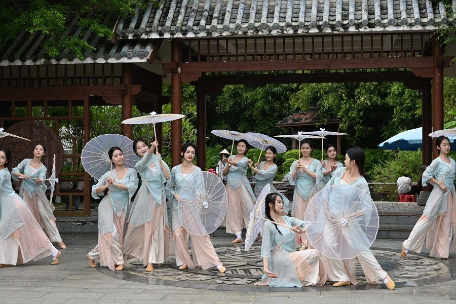 山河锦绣,盛世芳华。为欢度国庆佳节,喜迎新中国成立73周年加强舞蹈表演专业学生艺术实践能力,推进产教融合,2022年10月1日至7日,人文教育学院舞蹈表演专业学生分批前往北海市园博园开展专业实践活动。此次活动共有300名师生参与。