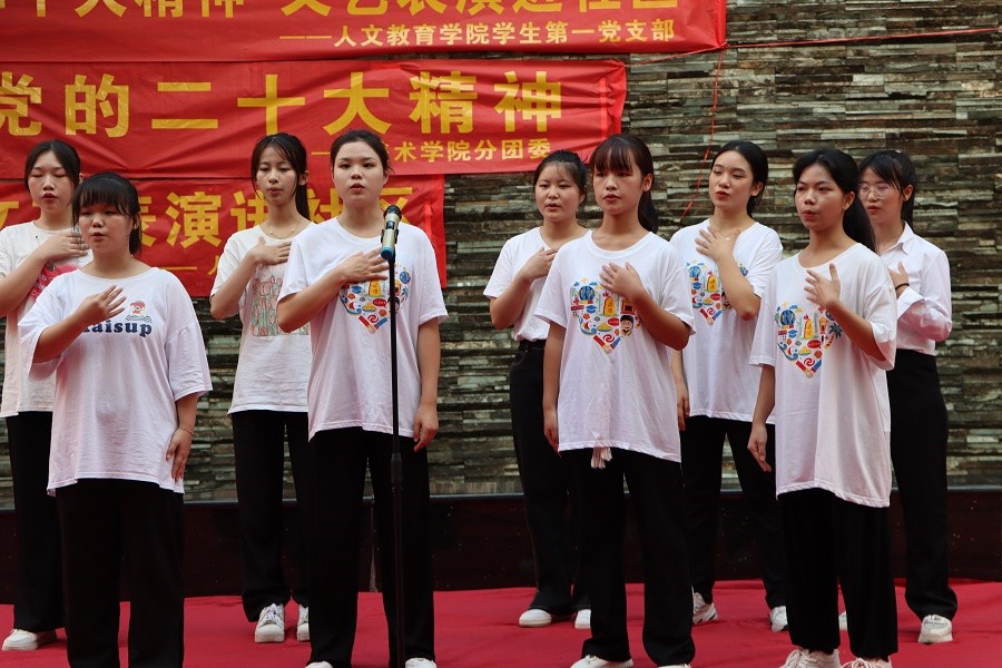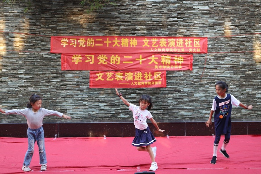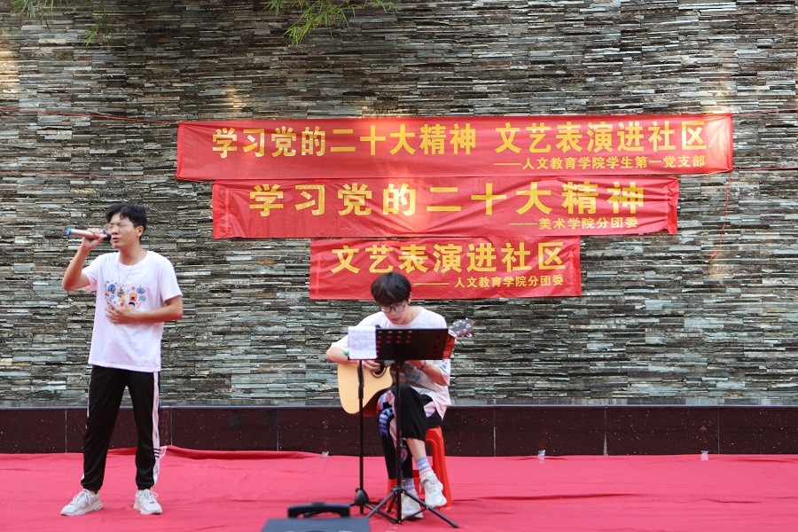为深入学习党的二十大精神,10月28日下午,我校人文教育学院学生第一党支部和人文教育学院分团委协同合作在橄榄苑小区举办了“学习党的二十大精神,文艺表演进社区”主题党日活动。