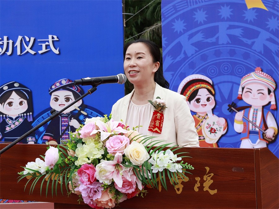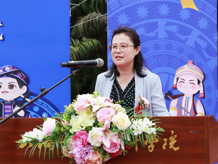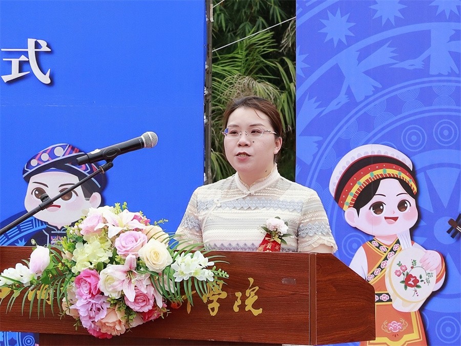 我校党委书记张阳在致辞中表示,学校高度重视民族团结进步工作,坚持把维护祖国统一、加强民族团结作为学校工作着力点,积极探索西部边疆欠发达地区民办高校的办学模式与发展之路。坚持以习近平新时代中国特色社会主义思想为指导,以铸牢中华民族共同体意识为主线,不断优化顶层设计,制定具体活动方案,结合学校办学特色,形成全员、全过程、全方位的民族团结进步教育机制。一是开设铸牢中华民族共同体意识专题课程,推进民族团结进步知识入脑入心;二是结合专业课程,以“设、画、拍、展、舞”等多种艺术形式展示民族团结进步内涵,弘扬中华民族优秀传统文化;三是把铸牢中华民族共同体意识纳入主题班会、主题团日活动内容,筑牢全体师生民族团结思想根基;四是打造中国传统节日民俗体验和独具特色的民族文化品牌活动,切实增强师生中华民族认同感和中华文化自信;五是大力投入建设“民族团结进步教育基地”,设置相关教育展厅、优秀作品展示长廊及图书馆阅读角等,强化基地宣传教育作用。学校还依托艺术专业优势,组织各族学生积极投身乡村振兴,服务地方经济社会发展,在2022年,学校荣获全国高校设计赋能乡村振兴志愿服务先进单位。她指出,我校通过举办民族团结进步宣传教育活动月,充分展示了中华优秀文化、广西壮族文化和北海地方民族文化,充分展示北艺各族师生心手相连、亲如一家、和谐融洽的民族团结大好局面,促使广大师生对搞好民族团结、铸牢中华民族共同体意识有了更新的领悟和体悟。她强调,学校即将迎接教育部本科教学工作合格评估大考,各族师生要关心评估、了解评估、参与评估、服务评估、贡献评估,凝心聚力、同心同德、众志成城,以实际行动为学校顺利通过本科教学工作合格评估贡献力量。