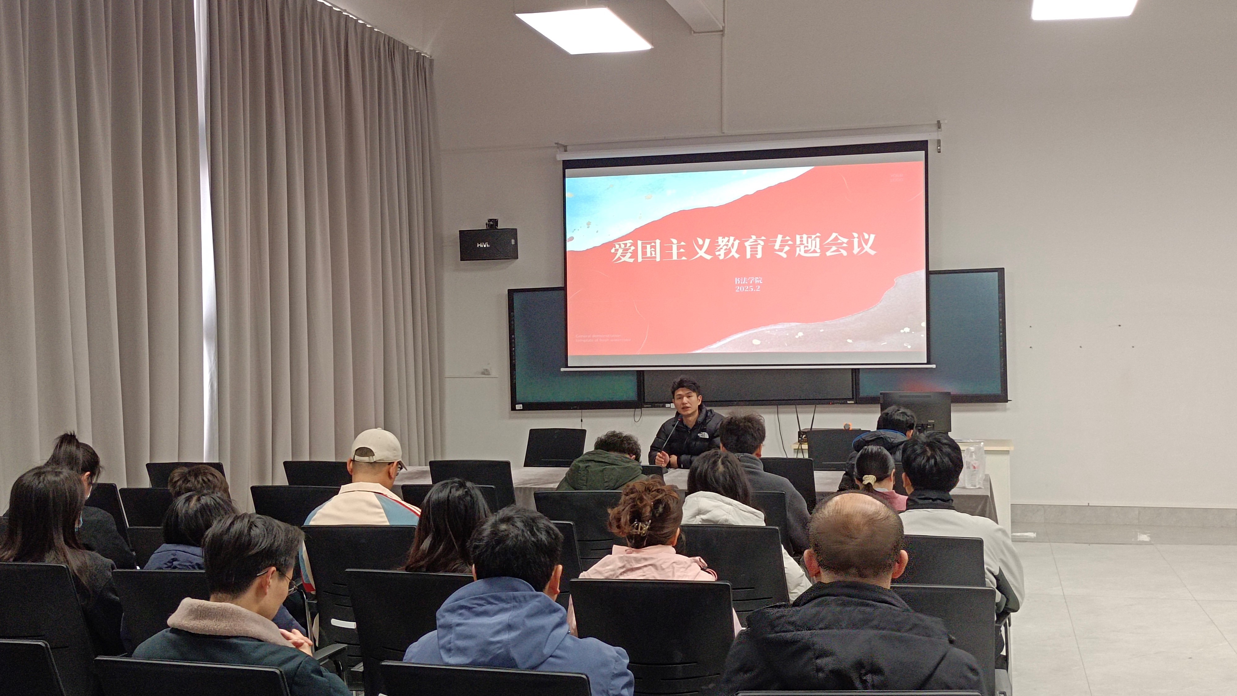 2025年2月10日,书法学院于艺德楼507顺利举办以“爱国主义教育”为主题的专题会议。本次会议由党支部副书记左云飞主持,党支部书记喻广林主讲。
