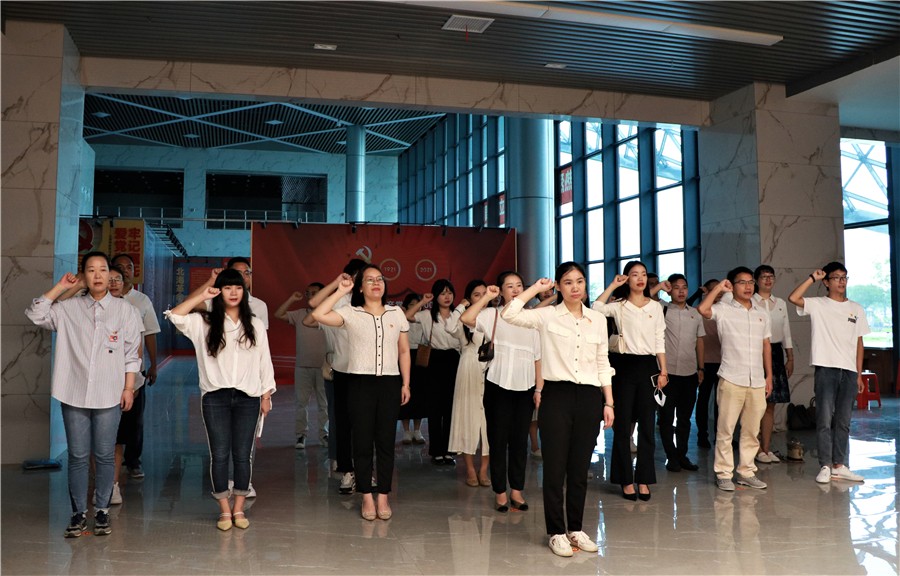 参观结束后,全体党员来到博物馆大厅,在鲜红的党旗面前重温入党誓词。全体党员纷纷表示,要牢记入党誓词,履行党员义务,坚信理想信念,立足岗位做贡献,努力把党史学习教育成果转化为推动工作的强大动力,奋力推进我校迈上新征程。