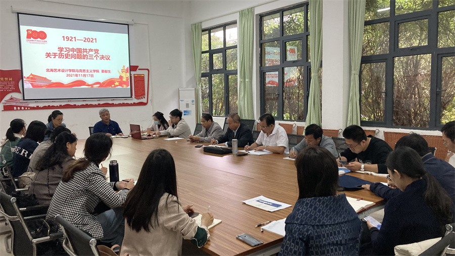 学习会上,马克思主义学院教师针对《中共中央关于党的百年奋斗重大成就和历史经验的决议》积极讨论和发言。