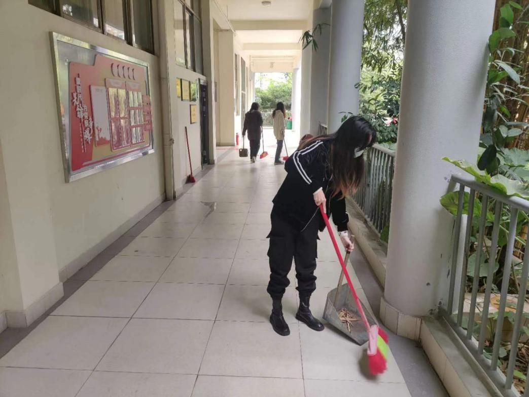 这次集中清扫活动,不仅整理、清洁了教学区域的卫生工作,也让公共卫生区域周边环境更加整洁,同时也提高了大家爱护环境卫生、共建美好家园的意识。(刘濯东/摄)