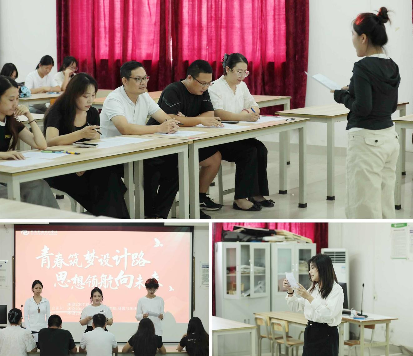 随着各项流程结束,本次党的创新理论宣讲比赛(初赛)正式落下帷幕。此次活动不仅加深了同学们对党的创新理论的认识和理解,也激发了他们将个人追求融入党和国家事业的热情。未来,我院将继续加强此类活动的组织和开展,推动党的创新理论在青年学子中入脑入心入行,为培养更多有理想、有本领、有担当的新时代青年贡献力量。(战思伊/摄)