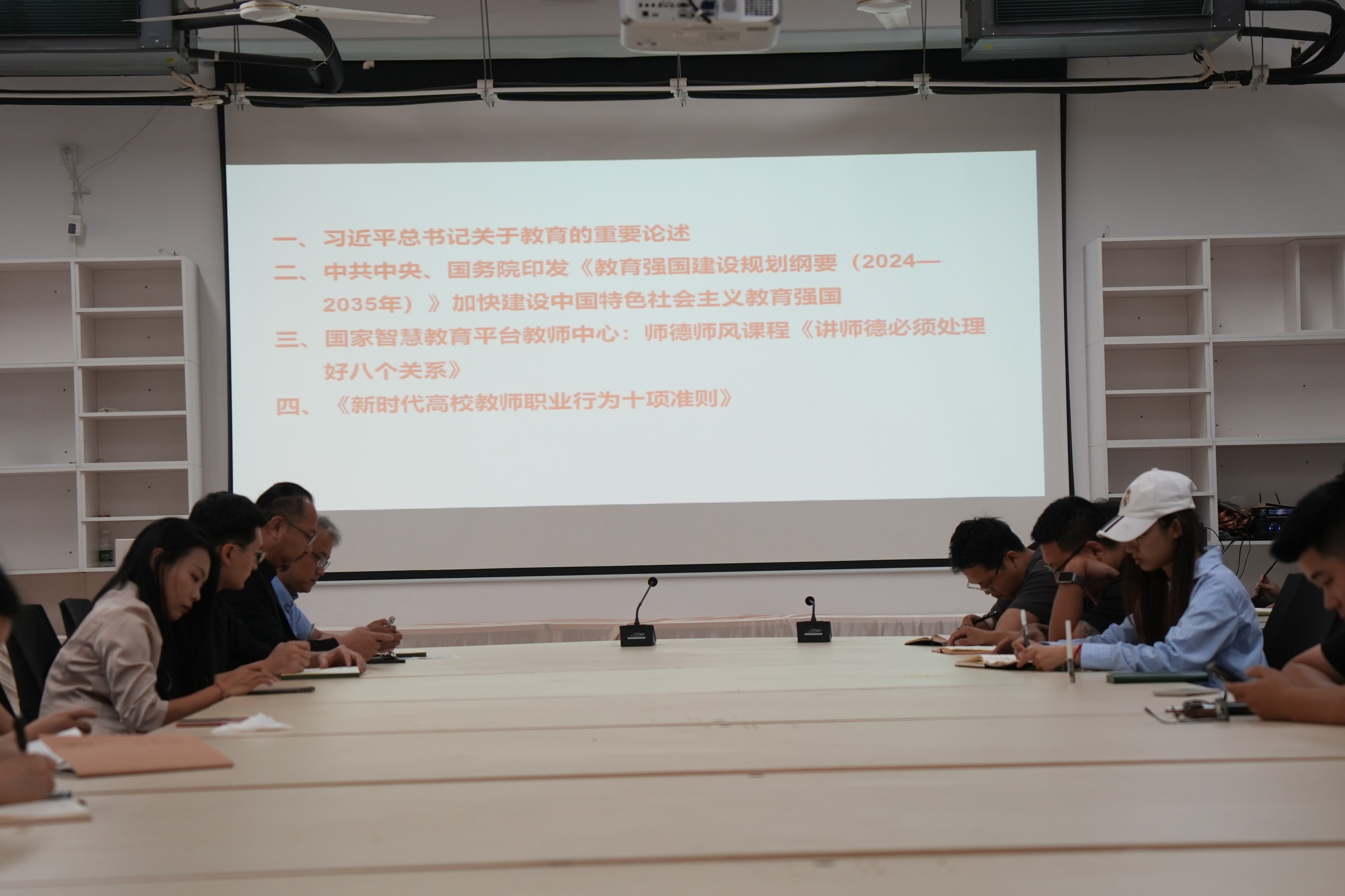 为全面加强新时代教师队伍思想政治与师德师风建设,引导广大教师坚定育人初心、严守职业底线,切实担当立德树人根本使命,2026年4月8日上午,建筑与环境艺术学院党总支书记庞定坤在公德楼207主持召开2026年上半年师德师风专题学习会,学院全体教师集中参会学习。