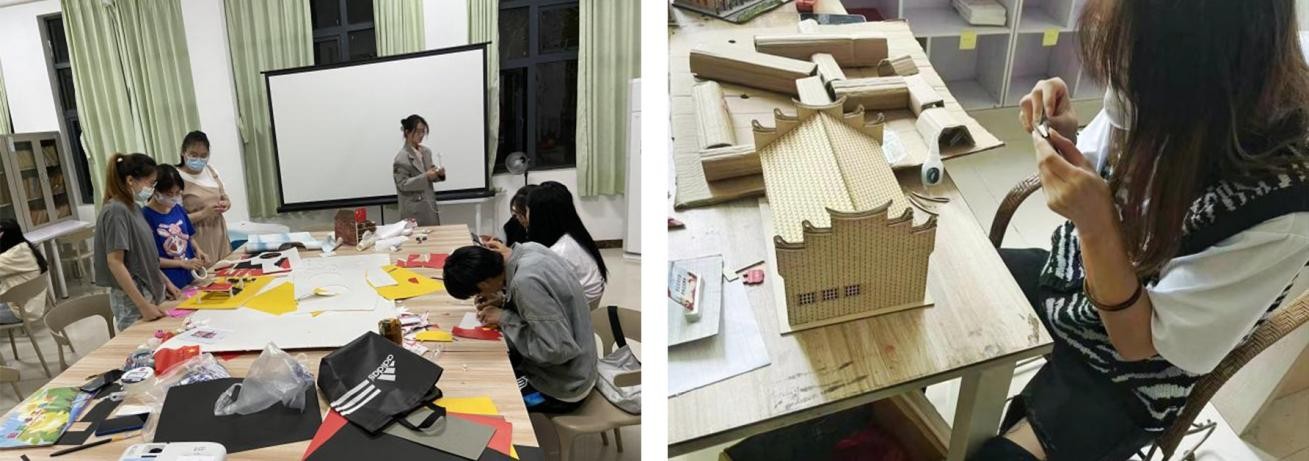 以纸板、粘土、木料等材质,配以3D打印、拼插等技术,一遍遍审核、修改,小组之间团结合作,互帮互助,最终定稿,以最优实力呈现在我们眼前。