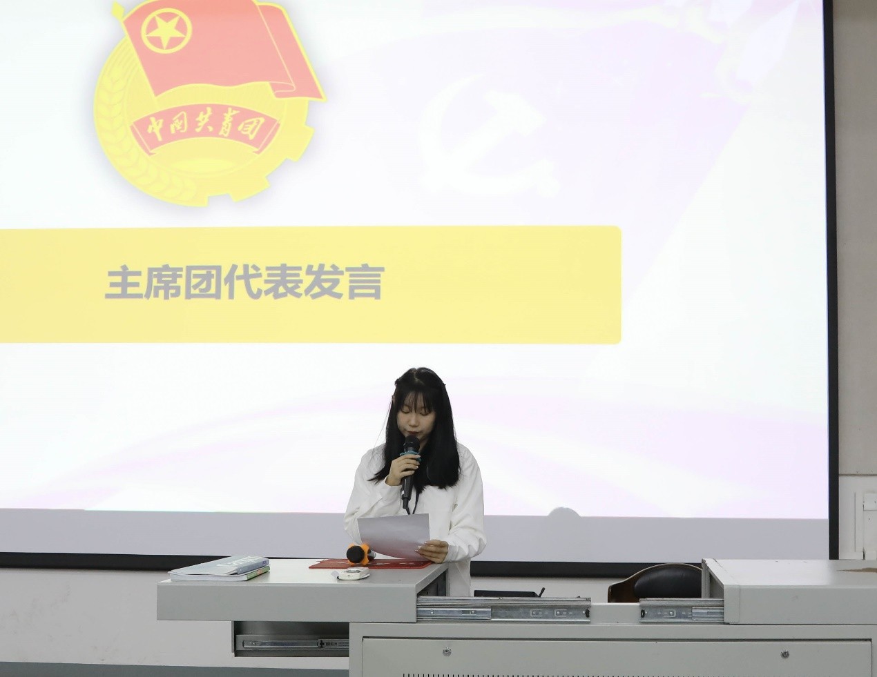 大会第二项,建筑与环境艺术学院团委学生会主席唐子岩发言。首先,她总结了本学期工作的情况及存在的问题。并表示应以主人翁的姿态投入到学校评估和学院发展建设当中,关注时事,积极参加活动,丰富课余生活。最后,她代表学生会表态,要不断努力做好本职工作、发展自我、完善自我,在校园生活中起好带头作用。