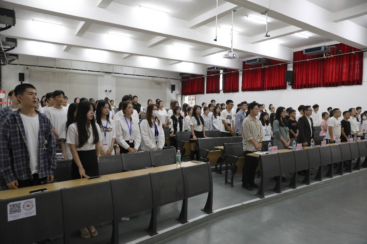 大会第一项,全体起立,奏唱共青团团歌。少年追梦,不求仗剑走天涯,青年奋起,怀抱理想中华。恰逢盛世,青年一代应在担当中历练、在塑造自我中乘风破浪、在披荆斩棘中塑造未来,让青春之光彩在新时代的广阔天地中绽放。