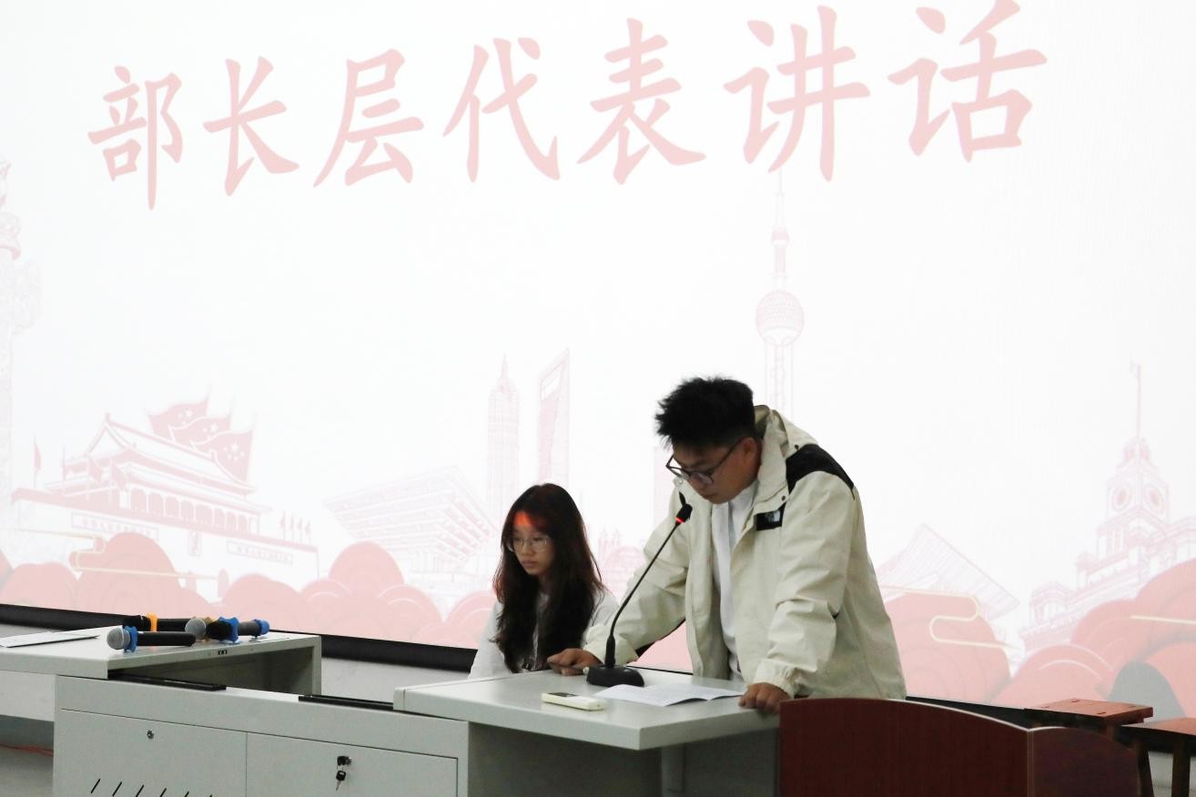 会议的第二项进程由学生代表依次分享感悟,首先由宣传部主席层胡婷烨开始,分享了锚定工作定位,强化组织效能,以更高标准、更实作风推进各项工作。部长层王荣禄,汤文雅分享了现阶段的工作,以及关于后续重点,更好的帮助部员们明确重点和目标。干事层沈俊,赵子硕分享了作为基层干事,需要保持严谨的工作态度,主动学习,积极配合。