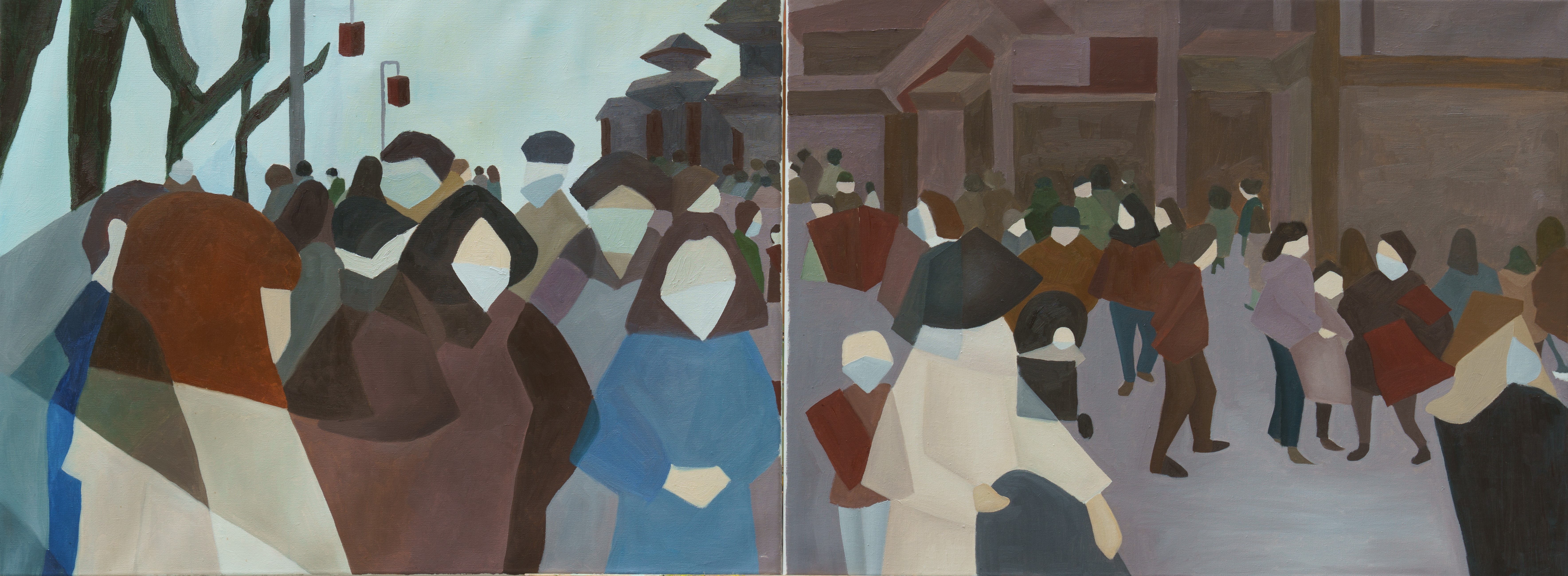 郭梦园 《朝圣的人群》 50cmx50cm 2023年 纸本水彩