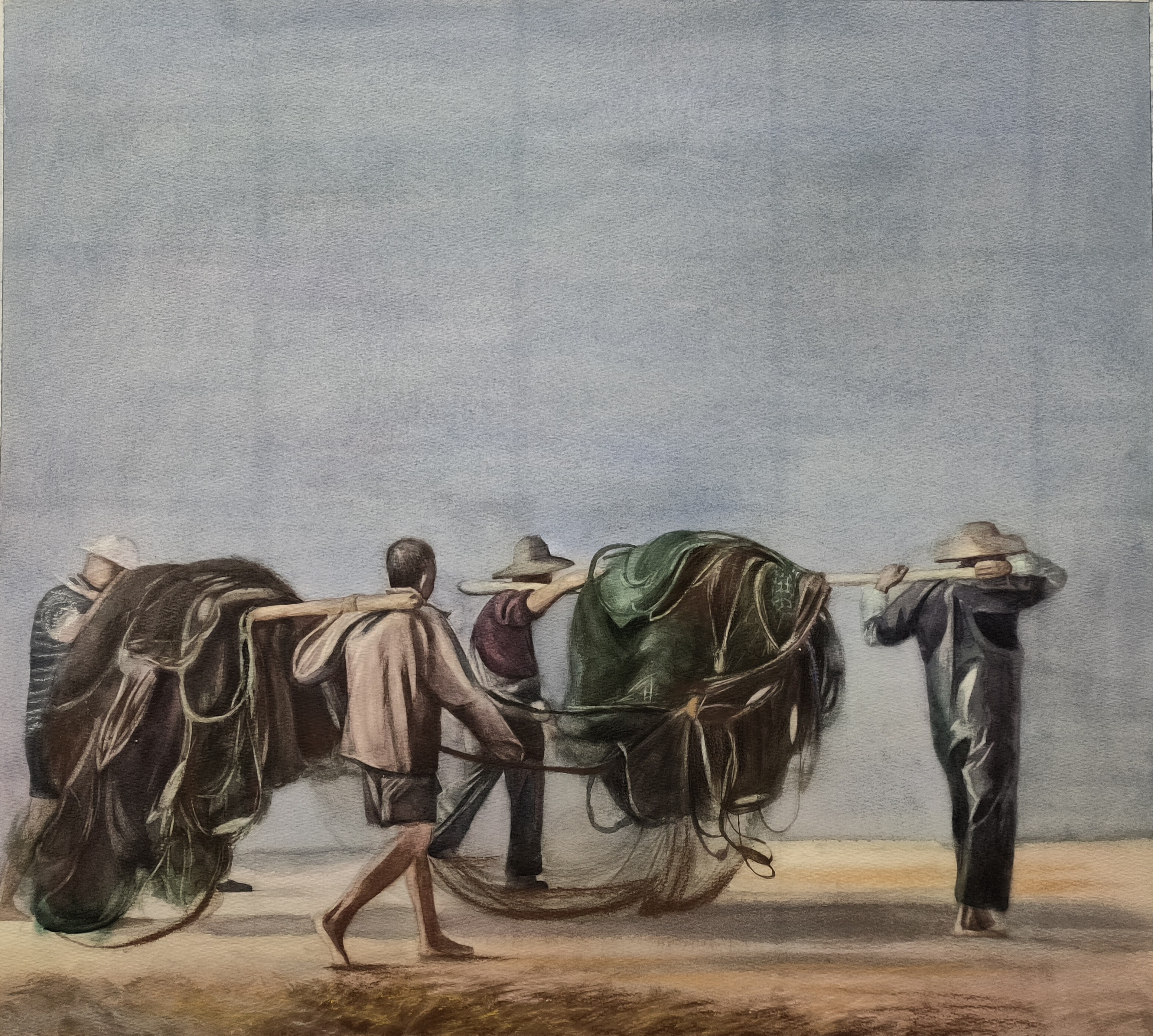 何思缘《渔民》(之三) 48cm×48cm 2023年 纸本水彩