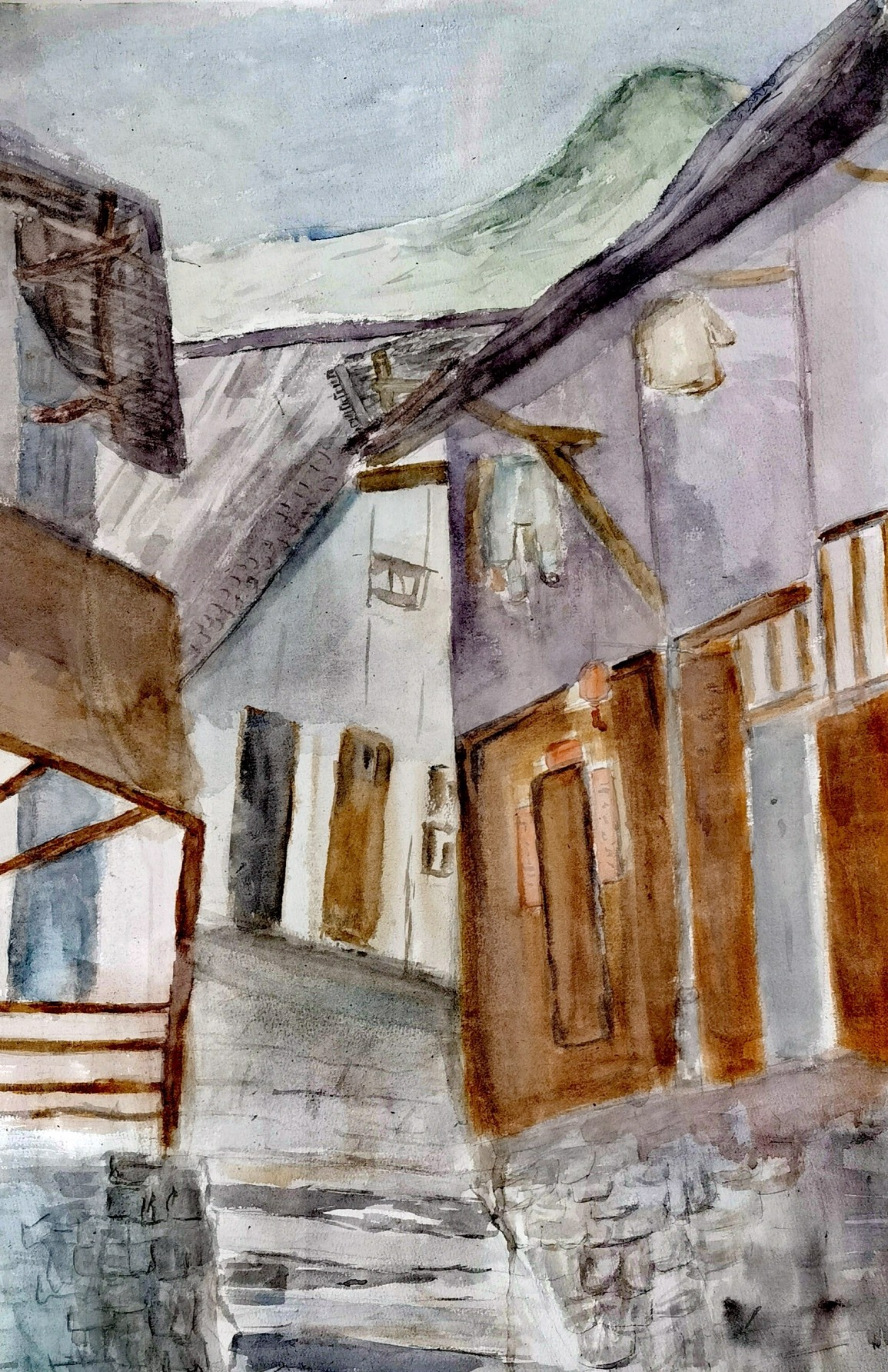 吉克妞牛 《老宅子》 75cm×52 cm 2023年 纸本水彩
