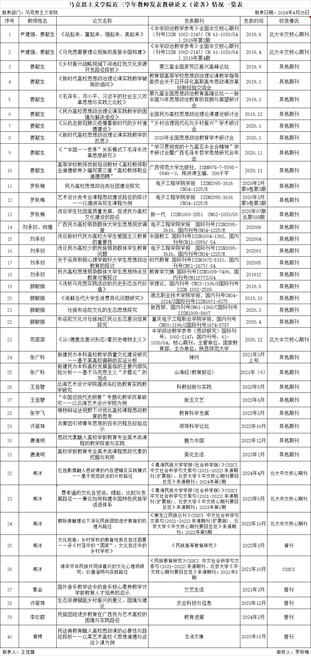 马克思主义学院近三学年教师发表教研论文(论著)情况一览表