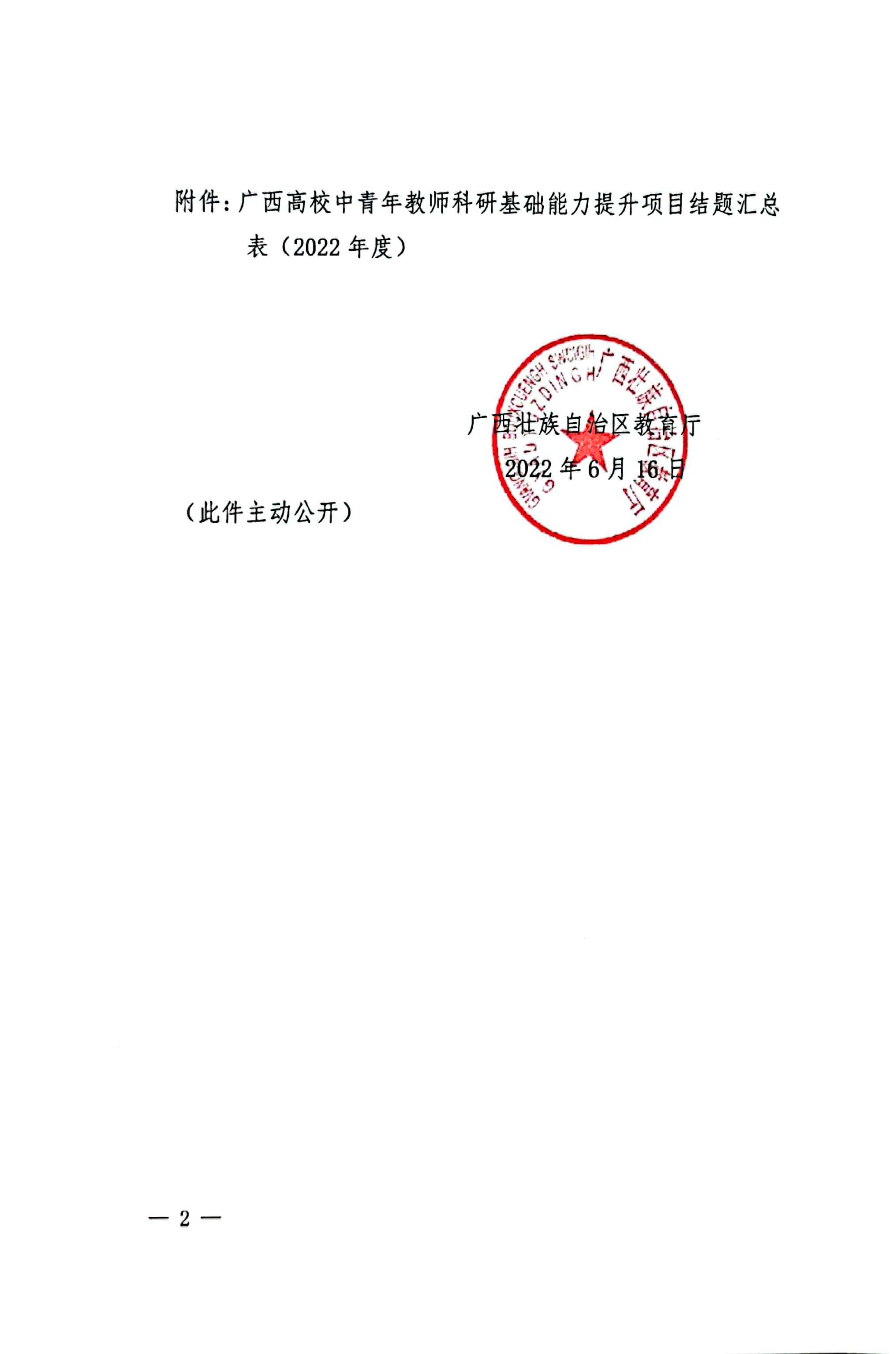 桂教科研〔2022〕8号自治区教育厅关于同意2022年度广西高校中青年教师科研基础能力提升项目结题的通知.rar