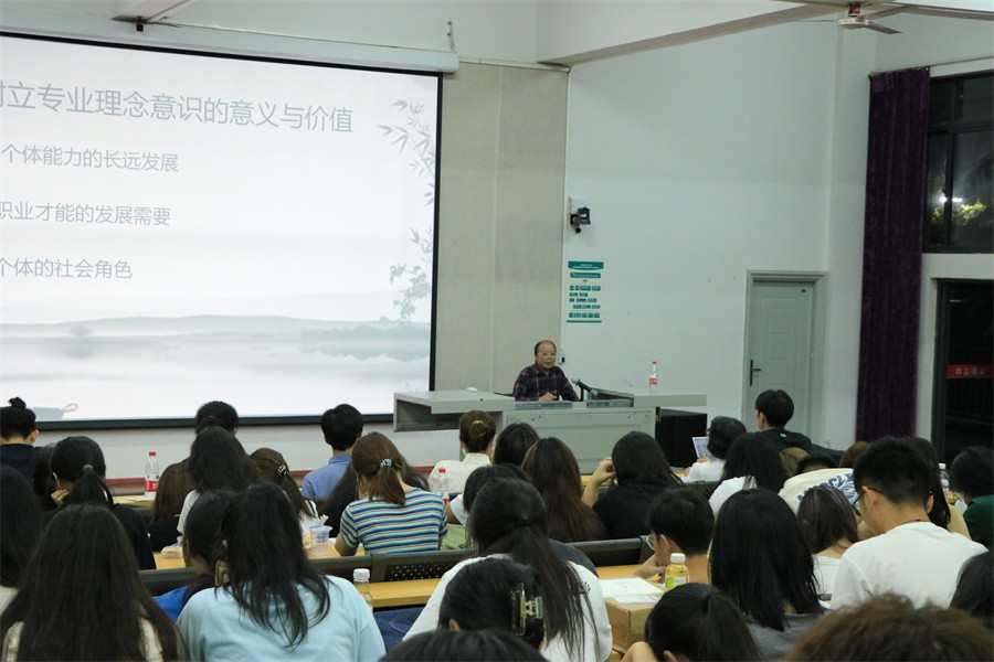 紧接着,黎东明教授以社会角色为中心,为大家讲解专业意识对专业选择的重要性。他以专业能力的发挥在文化艺术活动中的体现展开讲授,进而剖析专业理念在个人定位中的实现与社会给予的专业期待之间相互转换的关系。他以诸多书法家经历为背景,帮助同学们认清专业历史发展规律,“认清历史,才能认清现在;认清历史发展规律,才能加入到时代发展中去”。黎东明教授进一步结合专业理念,指出“发展个人就是发展学科”,大学生应该具备强烈的理念意识,凭借自身发展增强学科竞争力,以自身努力形成个体发展与专业学科点的良性循环。他还强调树立专业理念在社会活动中对个人社会角色的体现,以及专业理念在社会反映中至关重要的作用,帮助大家在认清专业的历史发展规律的同时,自觉成为时代发展洪流中的一员。