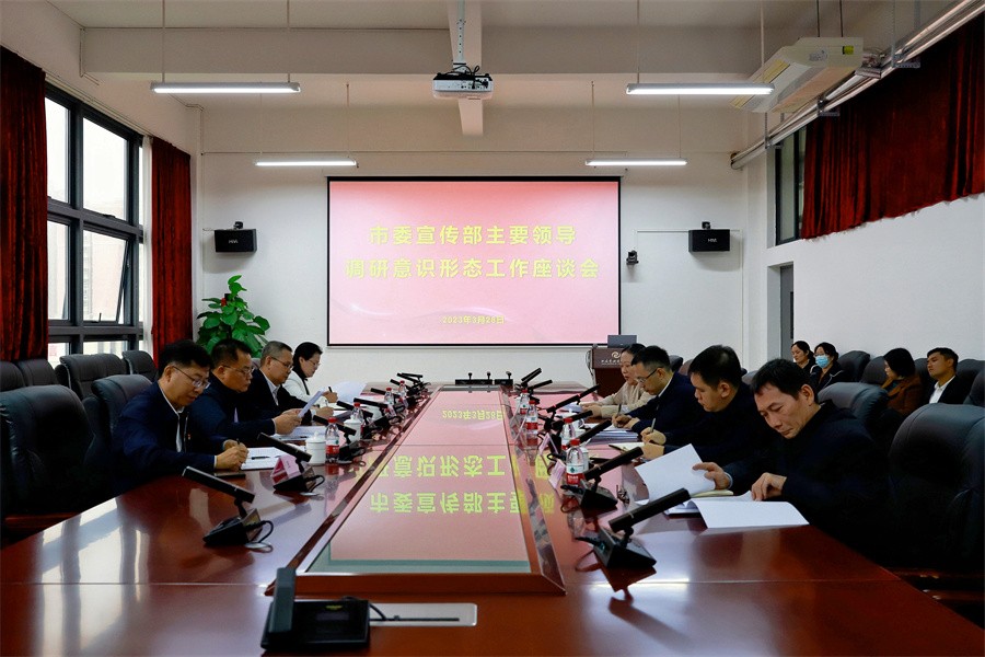 校党委书记张阳向调研组一行介绍了学校意识形态工作情况,张阳书记围绕组织领导、制度机制、阵地管理、思想政治课建设、校园文化等方面汇报了学校意识形态和思想政治工作方面的情况。她表示,意识形态和思想政治工作一刻不能放松,学校将深入贯彻落实党的二十大精神,进一步提升意识形态和思想政治工作的实效。