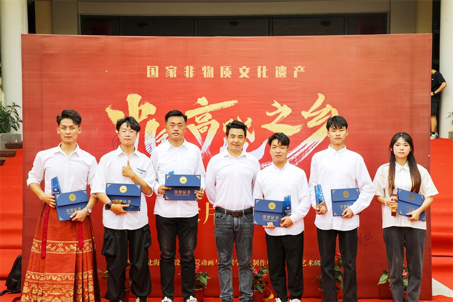 6月2日下午,由北海艺术设计学院出品,动画与传媒学院数字媒体艺术专业学生制作的纪录片《中国高跷之乡》发布会在北海艺术设计学院大礼堂举行。学校举办者郑超、党委书记范徽忠、校长卢新华、党委宣传部部长文春明、郭庆教授、王钢教授、高亮教授、廖大勇教授、北海广播电视台台长高峰、桂林电子大学设计与创意学院院长葛俊杰、北海华彩影视文化传媒有限公司总经理陈丛越、北海银河城市科技产业运营有限公司运营总监梁张云、北海365陈爱群总监等领导及嘉宾出席发布会。