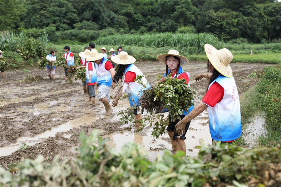 近日,雷暴雨导致合浦县红锦村担水村数百亩花生、荔枝受灾,我校40余名志愿者深入地头田间,在恶劣天气下帮助乡村老人抢收花生,采摘、打包荔枝。