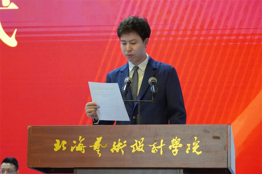 校长卢新华代表学校新一届行政领导班子发表讲话,感谢了学校举办者、董事会、校党委的信任和重托,感谢中层干部和及全校师生员工的支持。他表示在任职期间,全体行政领导班子将坚持以习近平新时代中国特色社会主义思想为指引,坚决拥护中国共产党的领导,增强“四个意识”,坚定“四个自信”,做到“两个维护”,坚持社会主义办学方向,学习贯彻党的二十大精神,落实立德树人根本任务,为党育人,为国育才。依照《中华人民共和国民办教育促进法》,遵守《北海艺术设计学院董事会章程》和《北海艺术设计学院章程》,依法依章履行职责行使职权,精诚团结,无私奉献,与全校师生员工同心同德,为实现学校第二个二十年的奋斗目标,把学校建成行业特色鲜明、国内知名的高水平艺术类应用型大学而努力奋斗。