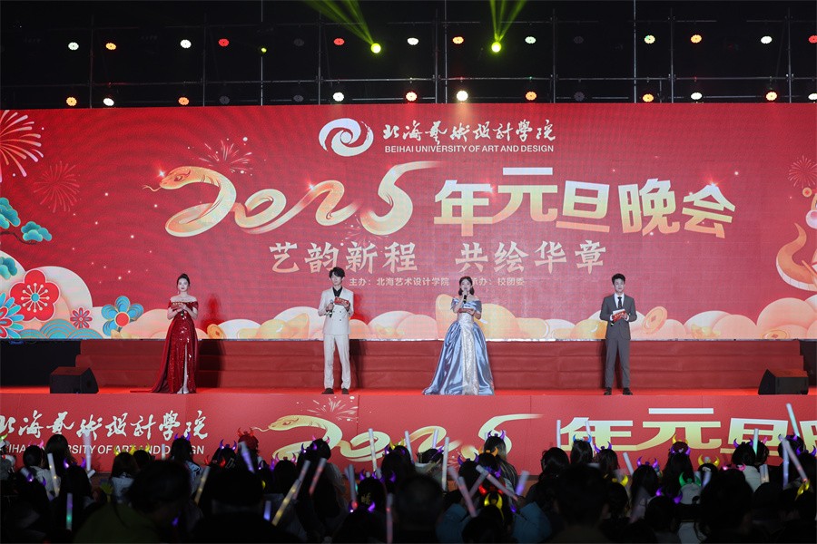 新岁序开,共赴新程。星光璀璨,歌声悠扬。12月29日晚,我校在西校区操场欢乐举办“艺韵新程 共绘华章”2025年元旦晚会。清华大学文科资深教授,原清华大学副校长、美术学院院长、中国美术家协会副主席,北海艺术设计学院顾问委员会主任王明旨;香港理工大学交互设计与智能设计专业学术带头人、英国皇家艺术学会会士、高等教育学会高级会士、清华大学卓越访问教授王佳教授;学校校长卢新华,常务副校长胡胜,党委副书记陈毅华、彭仁、刘承初,副校长陶立阳、刘朝雄、包建明,总督学王斌,纪委书记王照伟,以及各二级学院领导和各处室负责人出席晚会,与广大师生欢聚一堂。