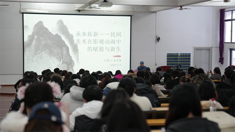 1月5日下午,青海师范大学美术学院副教授袁志翔应邀莅临我校,在西校区伦理楼107教室为学校师生作题为《承本拓新——民间美术在影视动画中的赋能与新生》的专题讲座。
