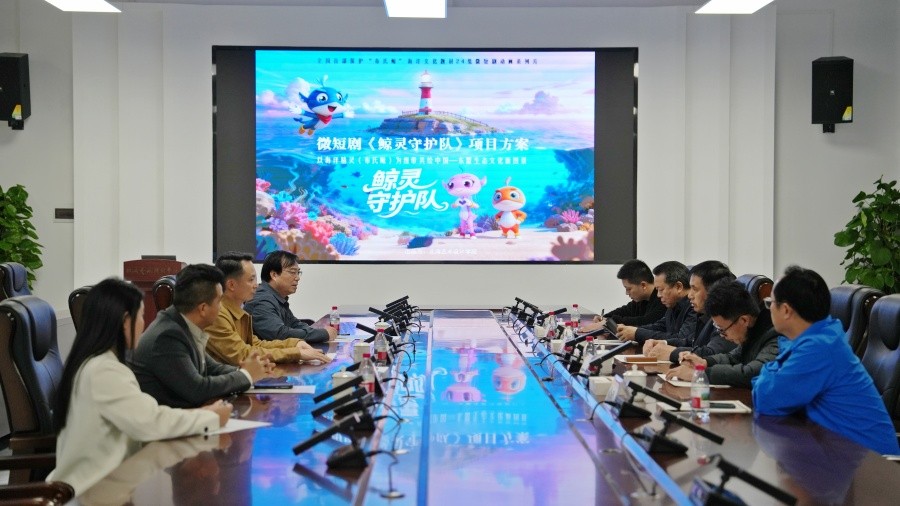调研会上,包建明副校长介绍了学校微短剧、动漫等教学和创作的基本情况。我校影视动画学院院长孙永辉以微短剧《鲸灵守护队》为核心案例,围绕项目备案与团队建设、创作背景与延续性、AI技术应用成效显著、鲜明生态保护主题、地域文化深度融合、角色设定体现地方特色、多平台发行与传播规划等方面对项目全流程进行详细介绍,并对学院人才培养模式创新、校地合作情况、产教融合发展、学生实践能力提升等方面的积极探索与成果作了汇报。