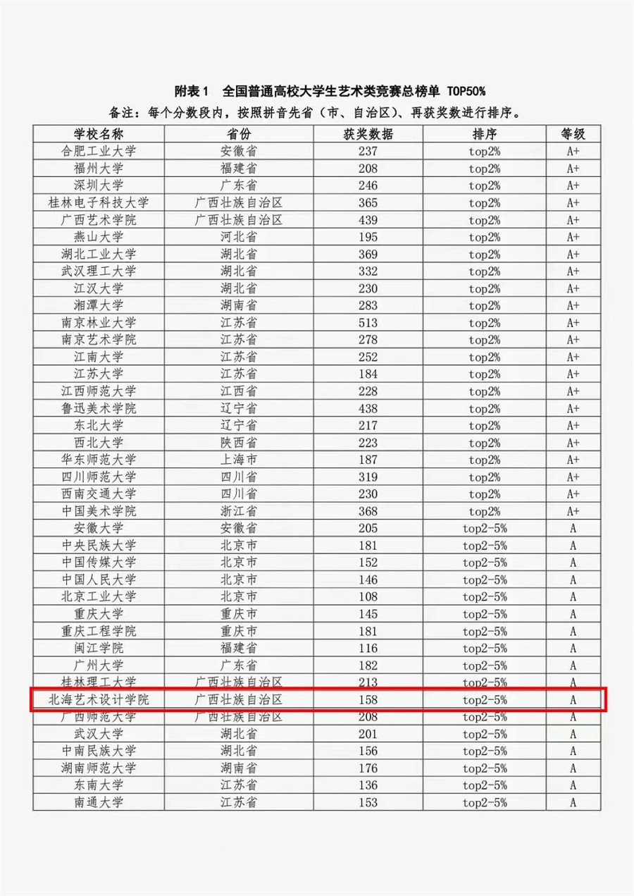 全国普通高校大学生艺术类竞赛总榜单 TOP50%