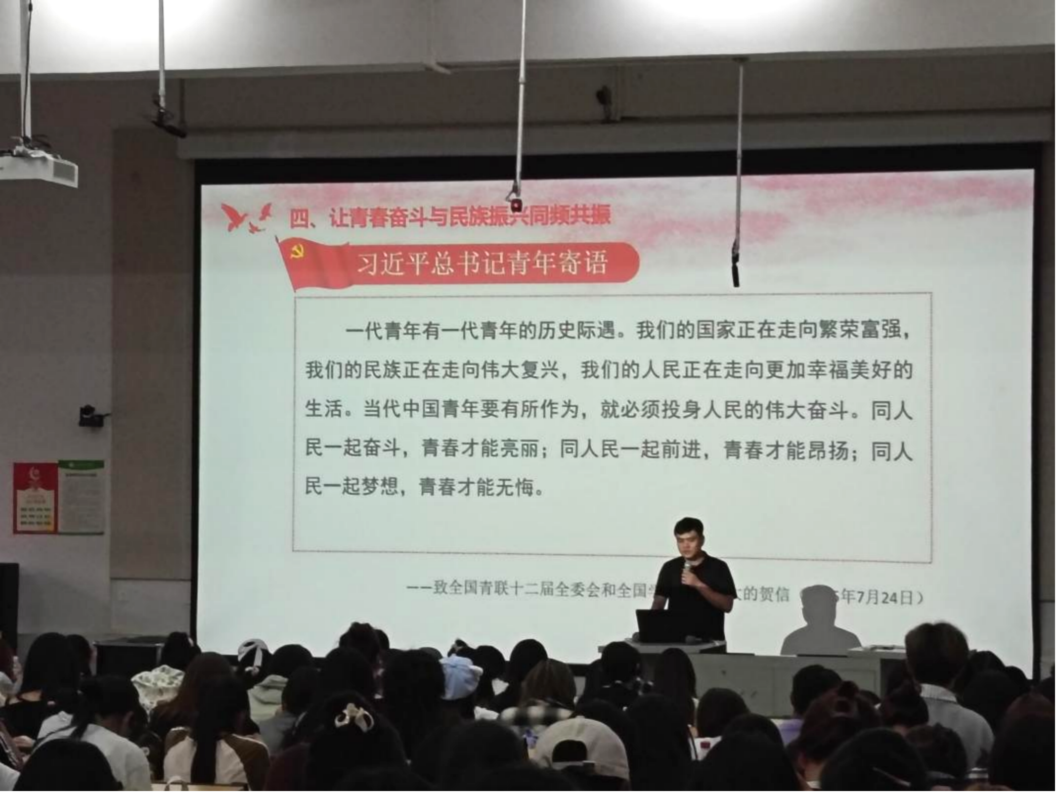 韩玮书记以“心怀理想,志存高远——以实际行动向党组织靠拢”为题,带领同学们了解了党的百年历程及伟大成就,党员的权利与义务等,最后以习总书记《致全国青联十二届全委会和全国学联二十六大的贺信》中,总书记对青年的寄语结束。