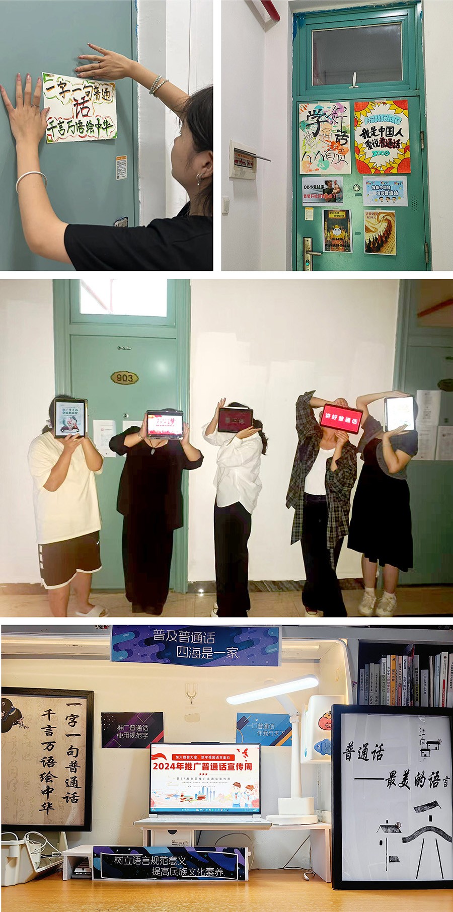 在后续的系列活动中,在学生宿舍开展了以“推普之家”为主题,鼓励同学们通过装饰、手绘等方式进行推广普通话的宣传。