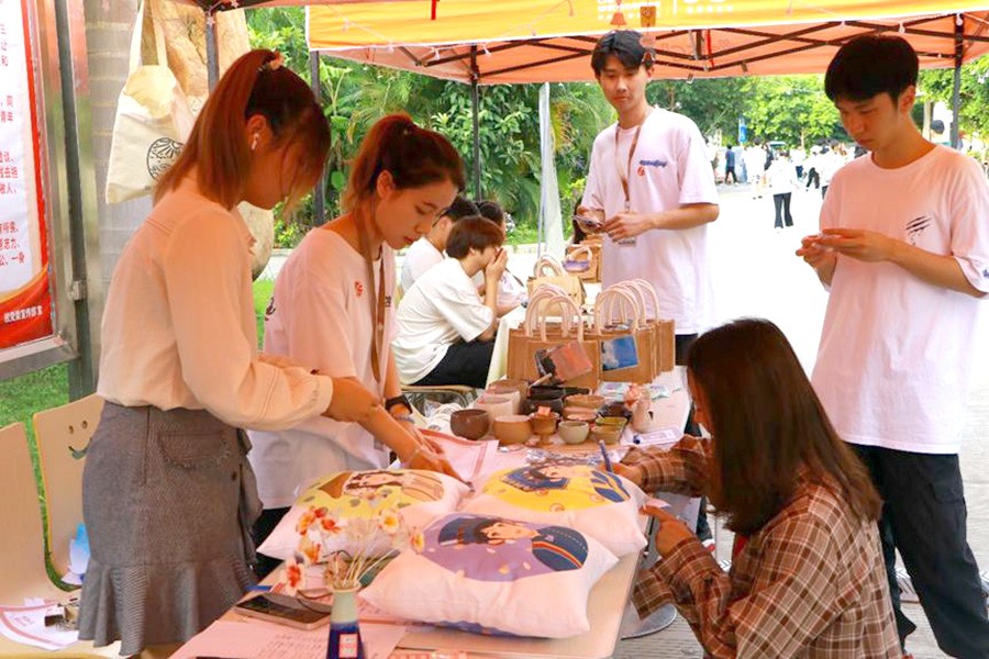 时近仲夏,踩着五月的尾巴,由设计艺术学院分团和人文教育学院分团共同举办的“艺”想“添”开主题活动于2022年5月27日圆满结束。此次活动为期两天,以“科技创新创业+以物换物+爱心捐赠”形式展开,又划分了四个活动专区:手工专区、互动专区、爱心义卖专区和毕业捐赠专区。同时为方便同学们了解活动分区特别设置了咨询台活动最终的全部收益和售卖后剩余产品,将以学校和参与师生名义一起捐往河池市大化瑶族自治县安置区