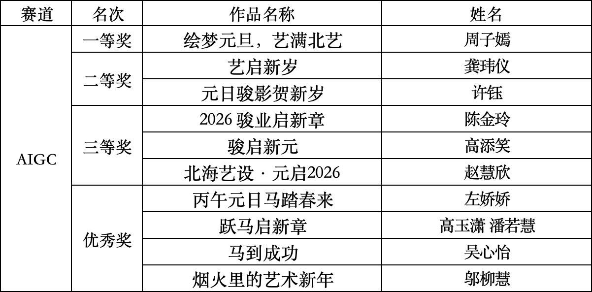 在新年伊始的浓厚节日氛围中,本次大赛为北艺学子搭建了一个展现才华、激发创意的广阔舞台。大赛秉承公平、公正、专业的原则,经过专家评委的评选,最终评选出各类奖项并予以公示。