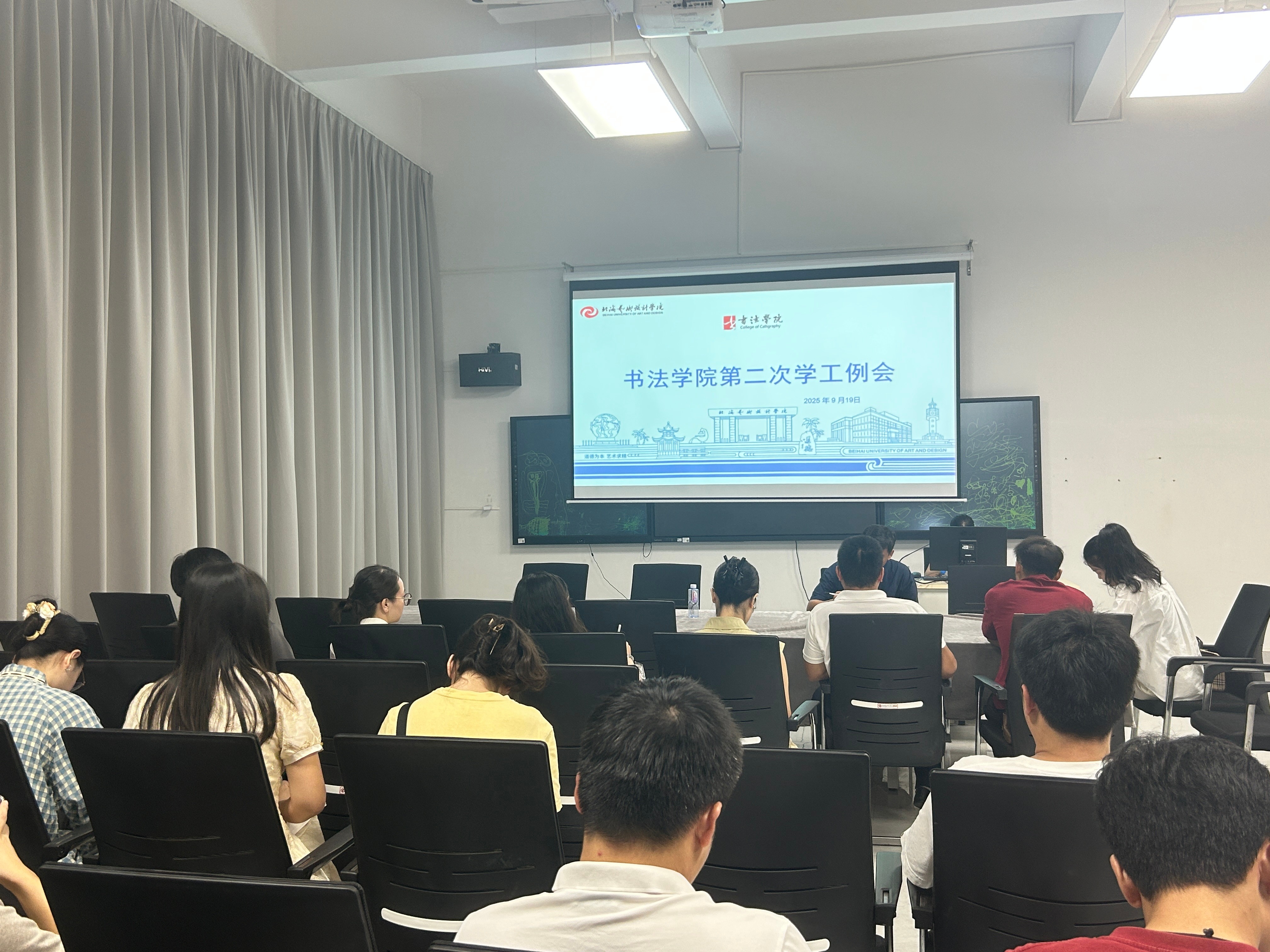 为部署新学期任务,提升学生工作实效,9月19日上午,书法学院学工办在艺德楼507书法教研室召开九月学工例会。党支部书记喻广林、副书记左云飞、副院长李家琪、黄荣婷、韦志忍、学工办全体教师及辅导员参加会议。会议由学工办主任胡慧捷主持。