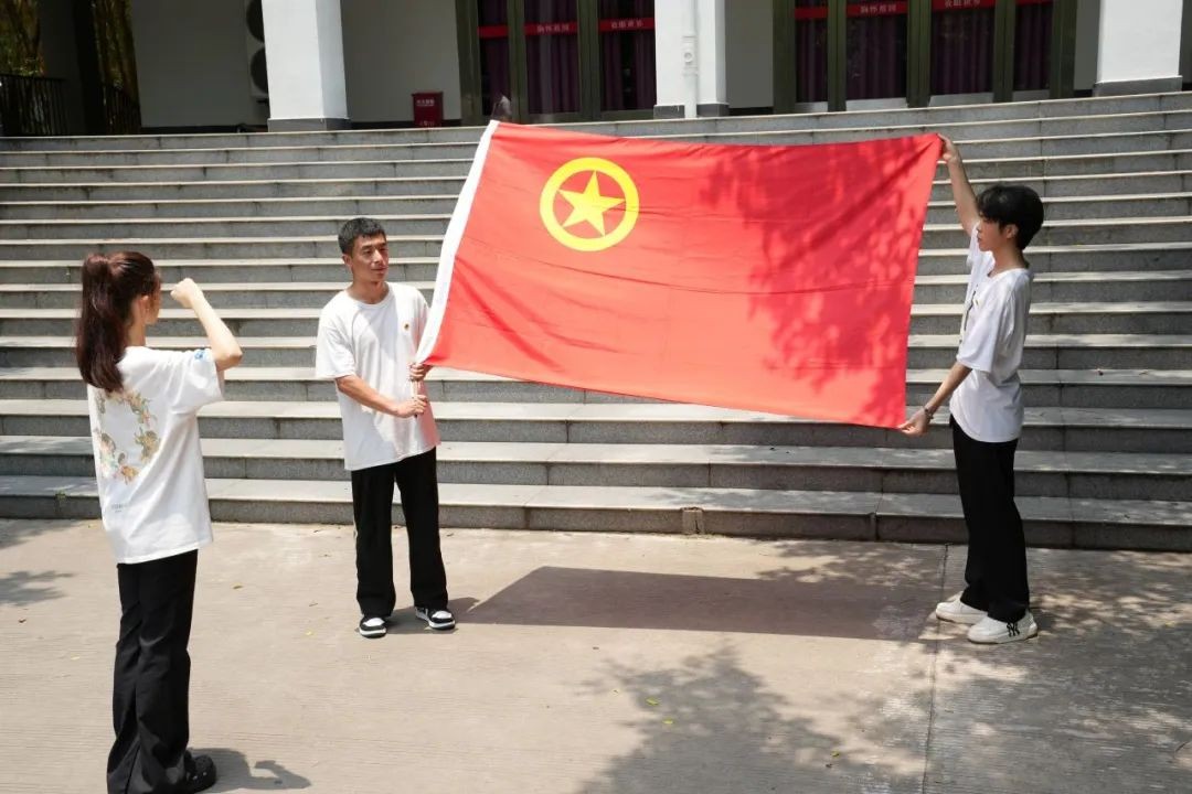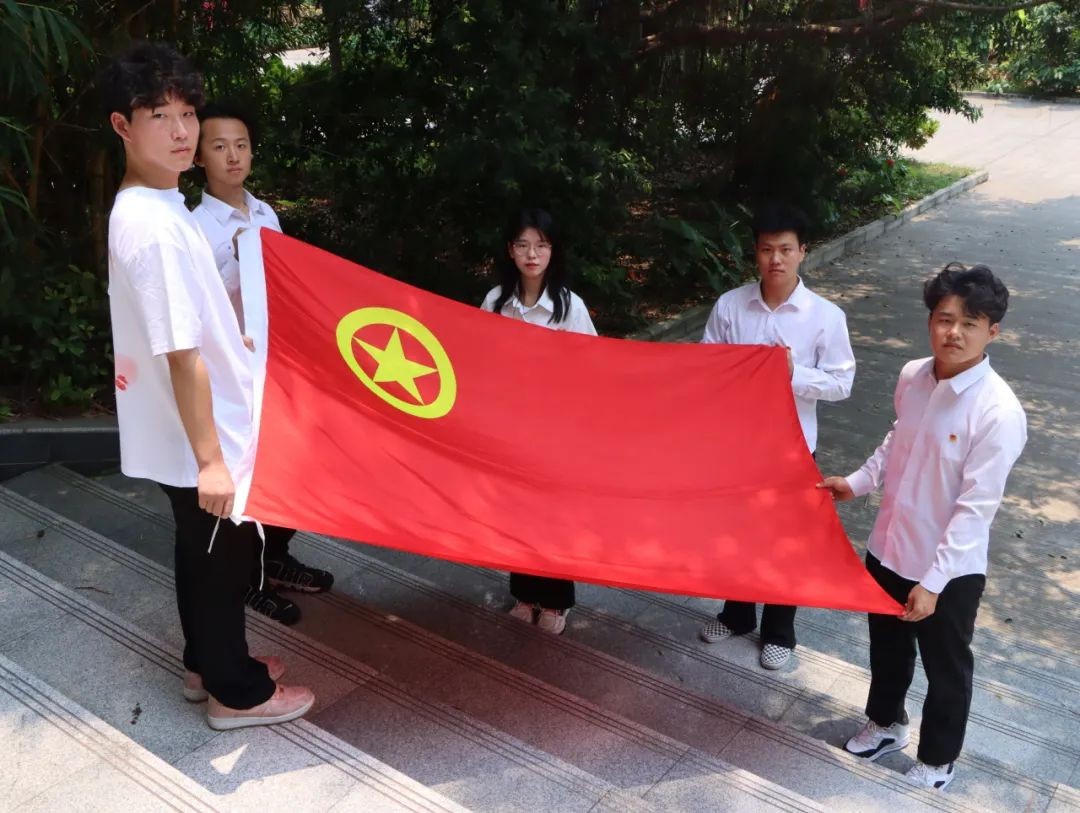 校团委开展定格青春,与团旗团徽共合影