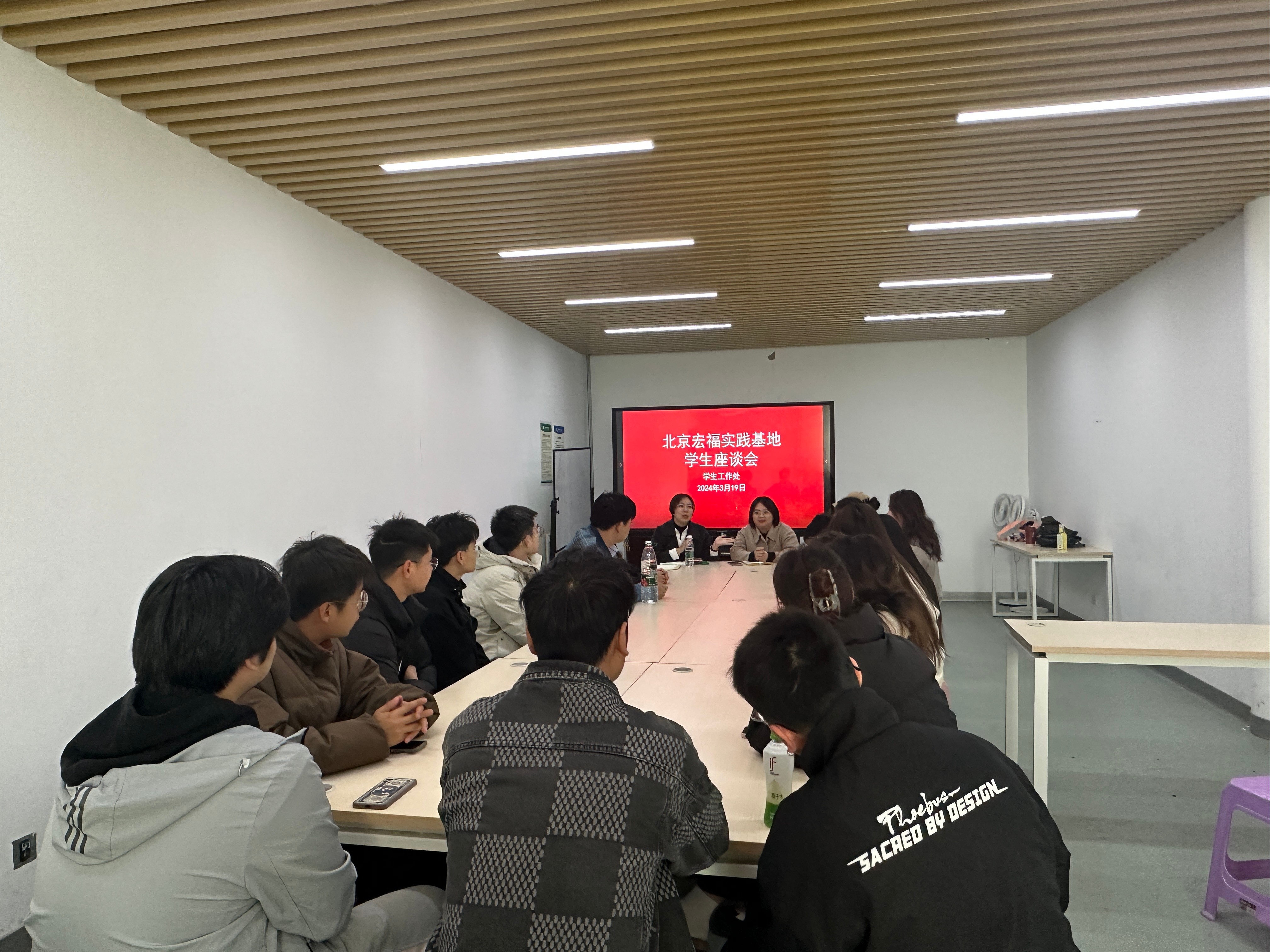 同时,学生工作处老师还与北京实践基地的学生代表进行了面对面交流,听取了他们对北京实践基地学生工作的意见和建议。学生们表示,上京之初对于气候、环境、饮食、课程量等方面存在短时间的不适,但对于北京实践基地的各项安排都较为满意,也通过各种各样的方式感受到了更为开阔的视野。对于即将到来的毕业、就业等问题,部分学生仍较为迷茫。针对学生毕业前的焦虑问题,学生工作处的老师也进行了分析和疏导,老师们建议同学们拓宽就业信息的获取渠道,在就业之初重视经验和资源的积累,以更加良好的素养面对就业困境。