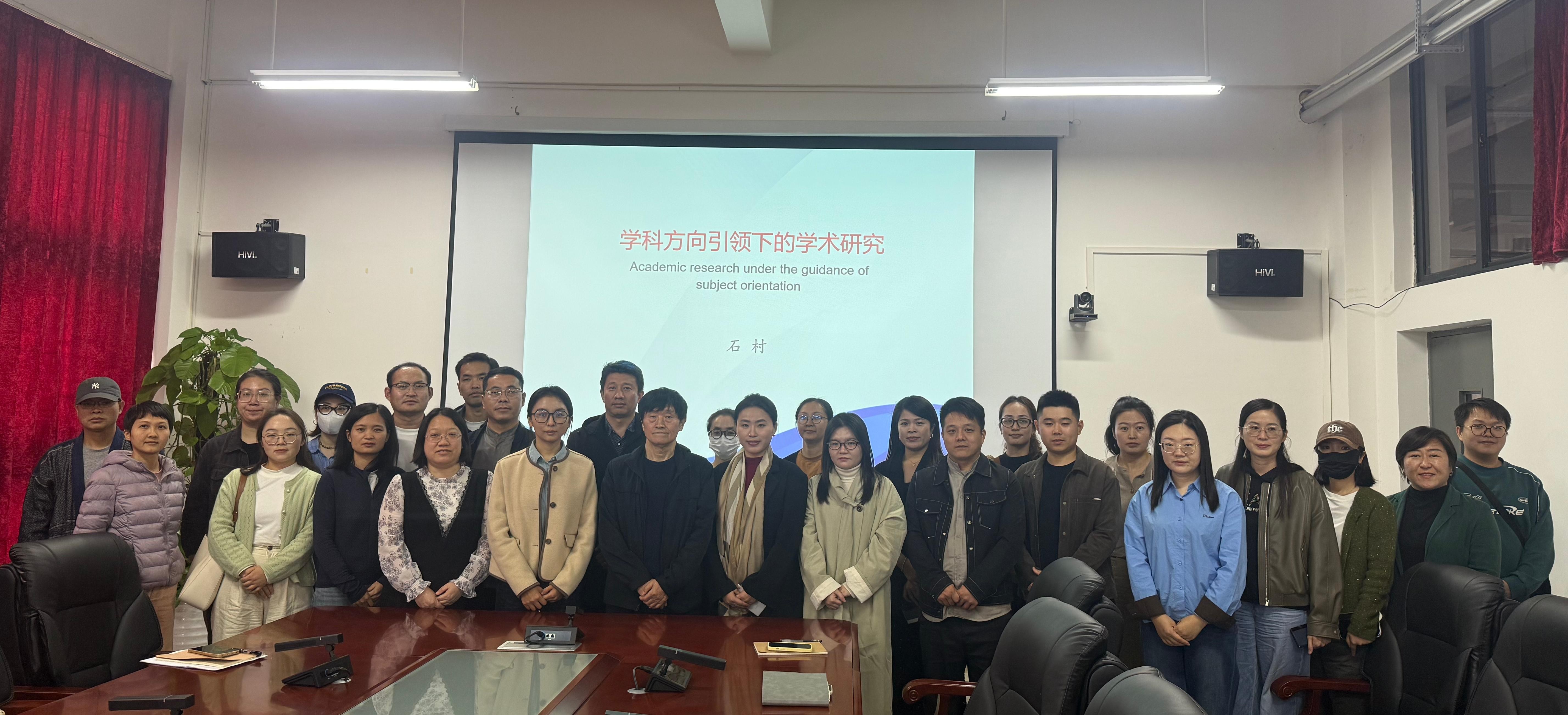 为进一步明晰学科发展定位,强化学术研究与学科建设的深度融合,提升科研人员学术创新能力,近日,我校科研处特邀请西安美术学院石村教授莅临校园,以“学科方向引领下的学术研究”为题开展专题讲座。全校各院系科研骨干、青年教师参加了本次活动。本次讲座由科研处副处长聂明丽主持。