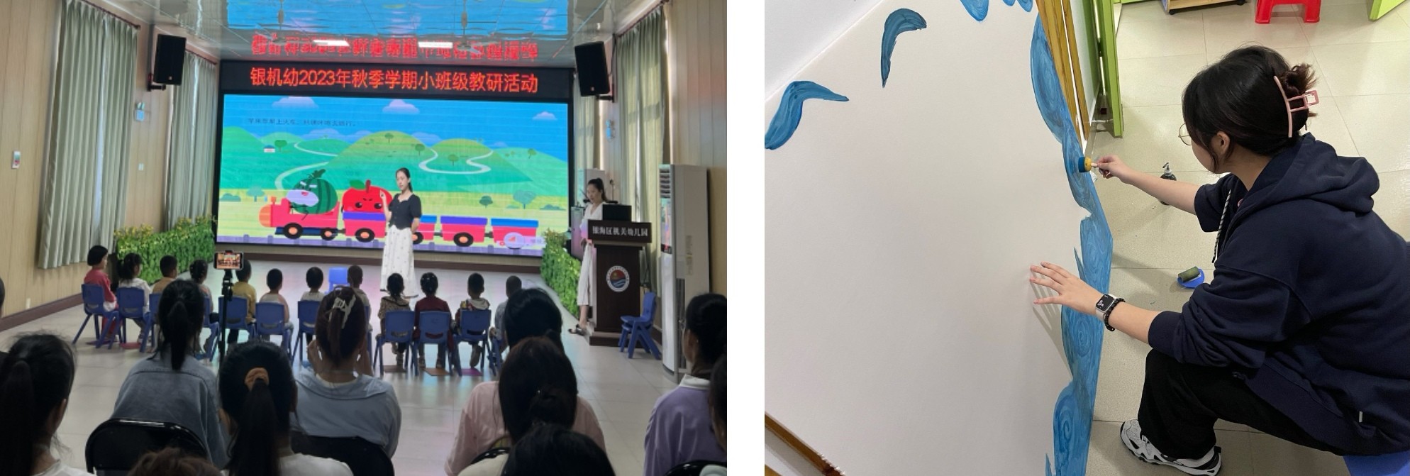 教育实践是提升学生实践能力的重要途径,是师范教育贯彻理论与实践相结合原则的体现。为了使学前教育专业学生进一步把握幼儿园的教育教学特点掌握幼儿园工作的基本内容,增强其从事教育工作的光荣感和责任感2023年10913和10月16日至20日,北海艺术设计学院人文教育学院学前教育专业2021级、2022级和2023级的同学分赴银海区机关幼儿园和海城区第一幼儿园分别开展为期一周的教育见习和教育调查。