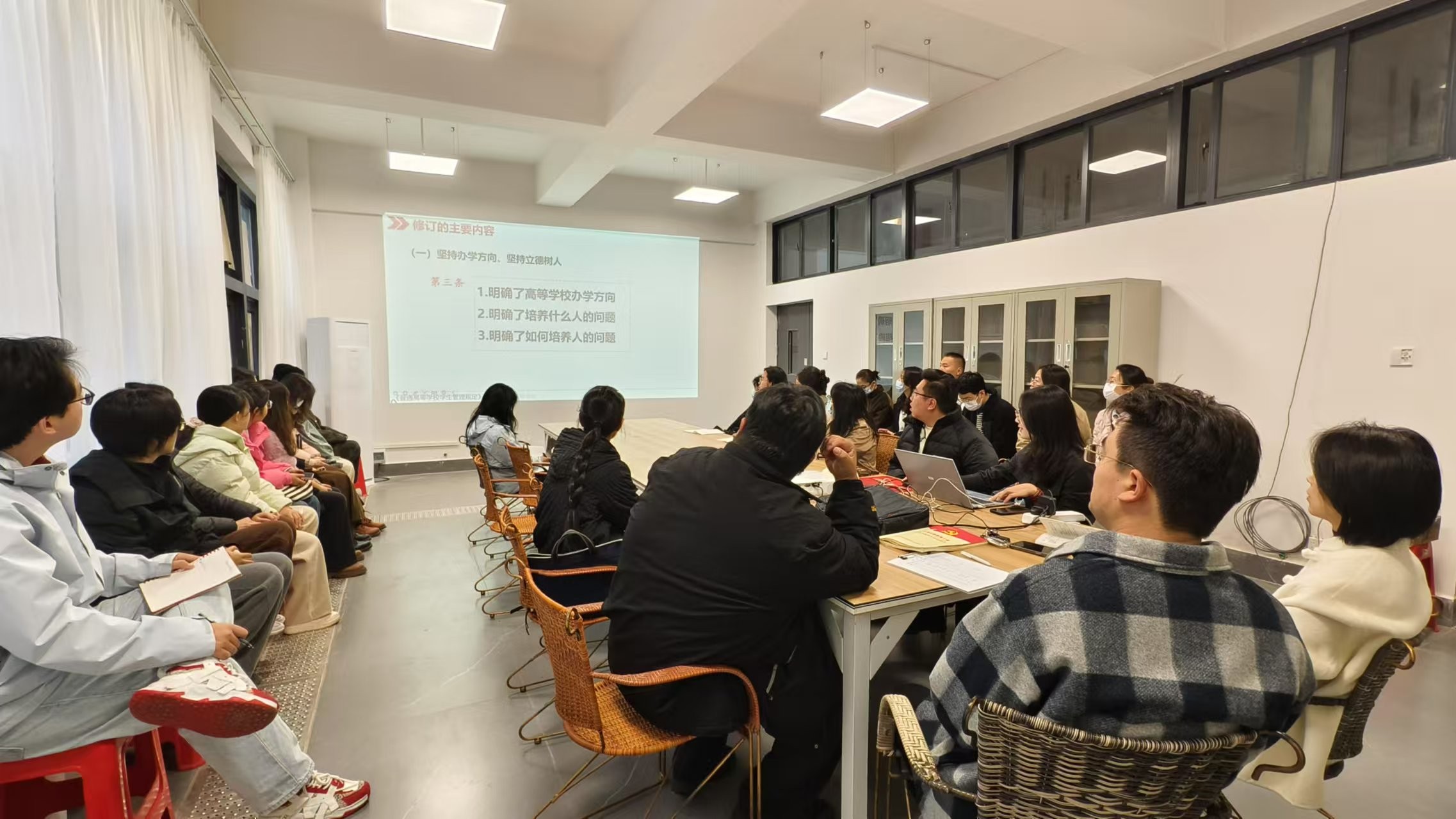 此次学习会议的召开,不仅提高了全校教职工对《普通高等学校学生管理规定》的参与度,更促进了大家对文件精神的深刻领会和准确把握。学院将以此次学习会议为契机,进一步加强学生管理工作,完善学籍注册制度,确保高等教育的公平公正和学生的合法权益得到有效维护。未来,学院还将继续加强相关的学习和培训,不断提升教职工的法治意识和专业素养,为培养德智体美劳全面发展的社会主义建设者和接班人提供有力保障。(曾心怡/摄)