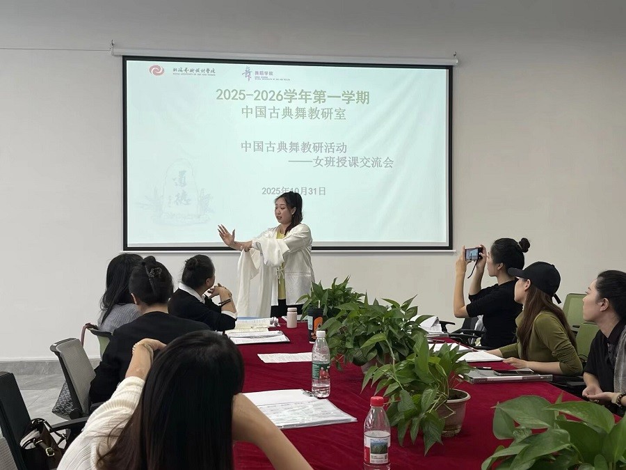 为深耕中国古典舞教学创新、强化师资队伍建设、弘扬中华优秀传统文化,2025年10月31日,舞蹈学院中国古典舞教研室成功举办教学能力提升研讨会。教研室全体教师参会,主任黄悦、曾凡冰教授全程统筹指导,以教研聚力推动教学质量与文化传承双提升。