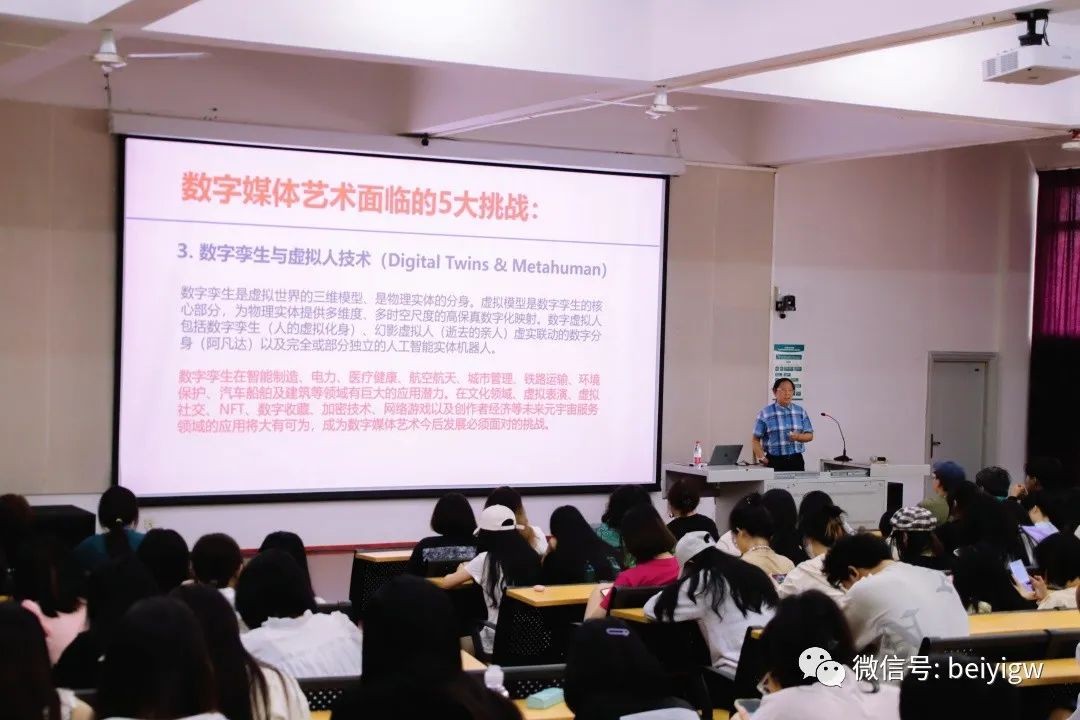 11月11日上午,于我校西校区伦理楼107,动画与传媒学院特聘教授李四达教授为师生带来了一场题为《智能时代对艺术与科技的思考》的精彩讲座,讲座由动画与传媒学院院长孙永辉主持。