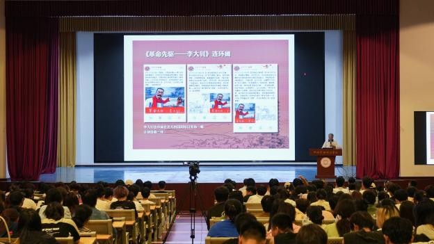 讲座伊始,王伟教授结合个人经验,以连环画的创作为切入点,分享了艺术实践的经验和领悟。他表示,人有目标,不会迷茫。相比较于浑浑噩噩虚度光阴,那些明晰自己为什么而活,踏实朝着目标前进的人,才能让自己行走的每一步都有价值。随后,王伟教授就关于中国文化主题原创内容展开讲解。他特别强调艺术创作要有发现美的眼睛,在中国传统文化中寻找灵感,还需给自己设立每日的目标,沿着既定的轨迹前行,在追逐目标的过程中不断提升自己。  王伟教授以连环画创为切入点,分享艺术实践的经验和领悟