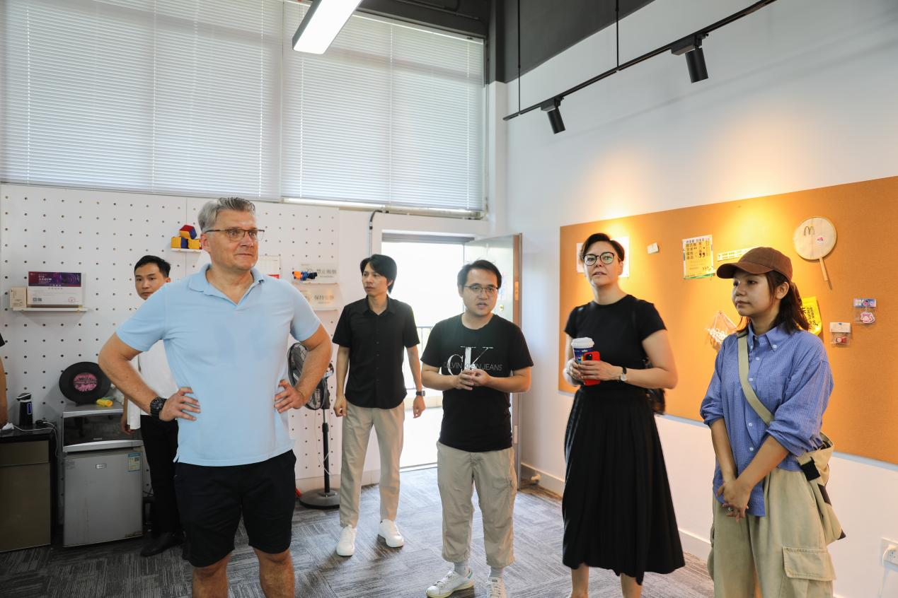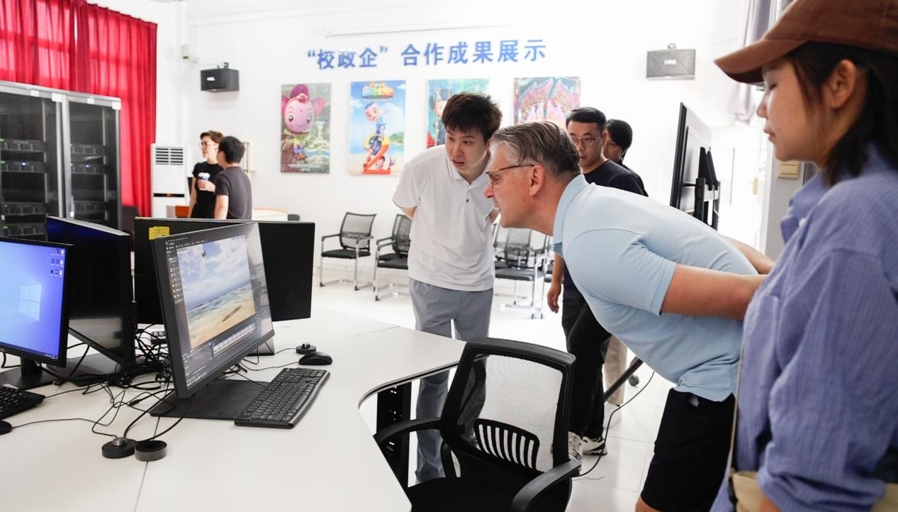 参观结束后,双方在动画与传媒学院综合楼前合影留念。Norbert教授表示,此次访问让他对我校动画与传媒学院有了更深入的了解,也让他看到了两校在动画与数字媒体教育领域合作的巨大潜力。他期待未来能够更多的合作,促进跨文化交流
